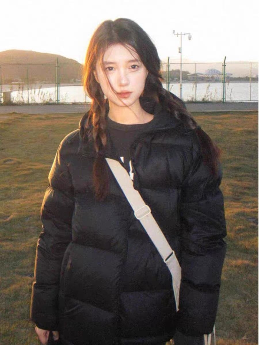黒色ショートカップルコットンコート レディース 2025 新作 増量フード付き小柄体型パンツコート 冬季外套