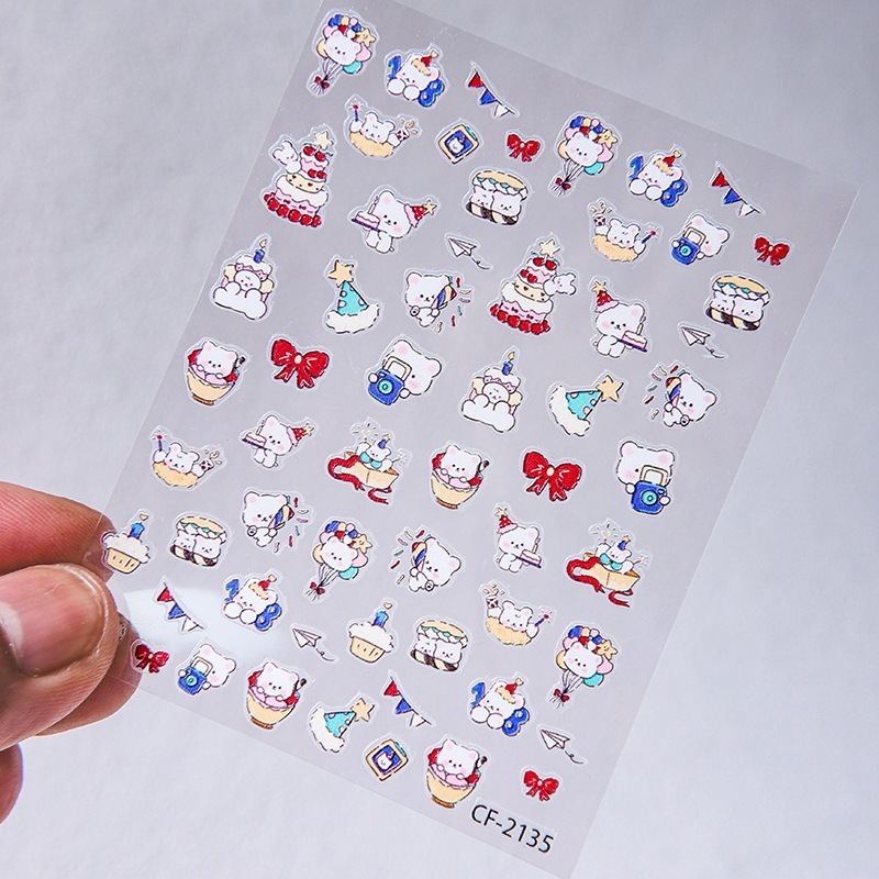 かわいい ケーキ ライン 子猫 ネイルシール 5D レリーフ ミニ キャンディ リボン デコシール