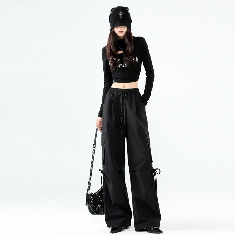 【3日出荷】秋冬 アンゴラレッド ウィンドパンツ アメリカン ワイド 登山 カーゴ 高腰 春服 レディース