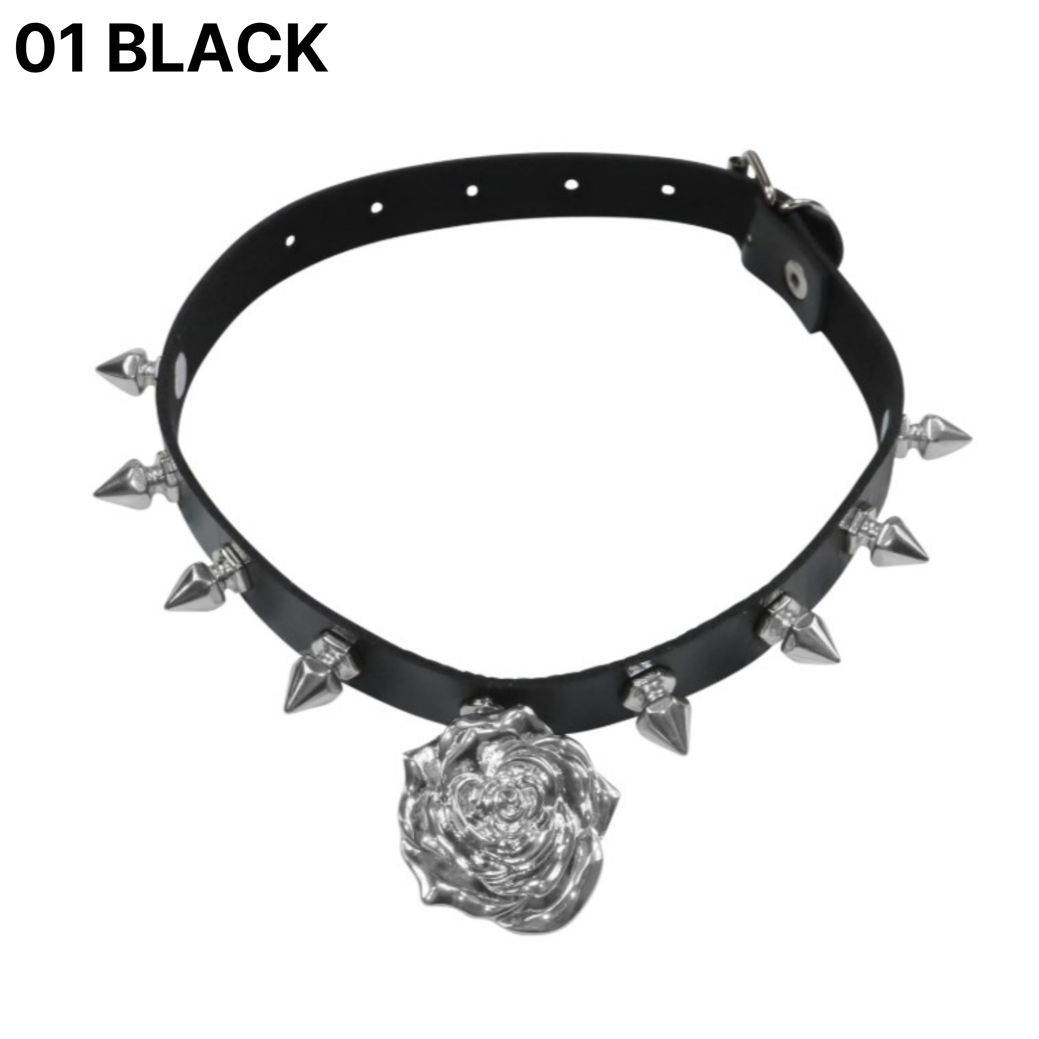 HURJABOYACC[MEOVV NARIN着用]韓国ネックレス Rose Punk Choker/可愛くてシックなジュエリー/ロマンティックだけどボールドなスタッズ装飾でギャップのある魅力をアピールできるチョーカー
