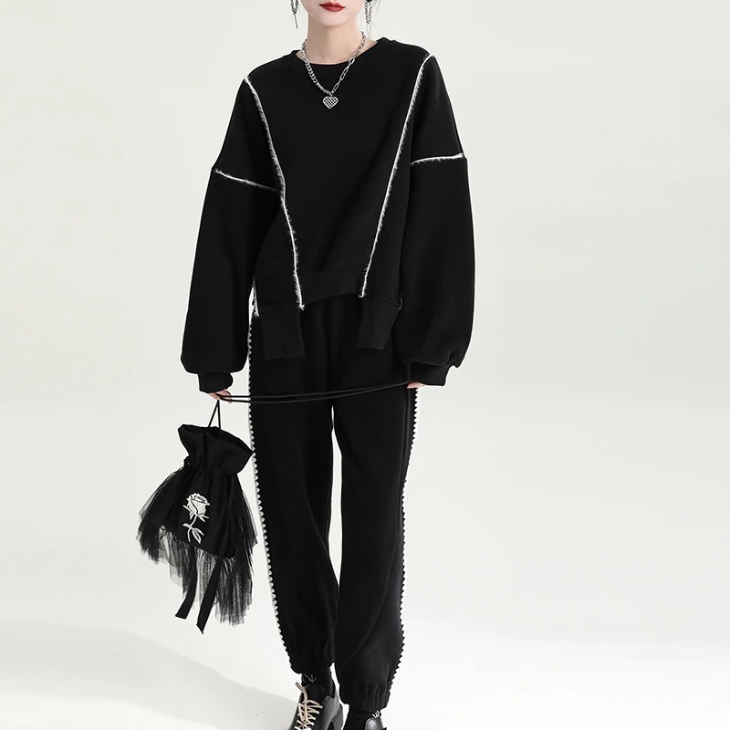 カシミヤタッチ 保温 裾スリット ラウンドネック トレーナー ドッキング 秋秋 裏起毛 メガ割 トップス ブラウス スウェット