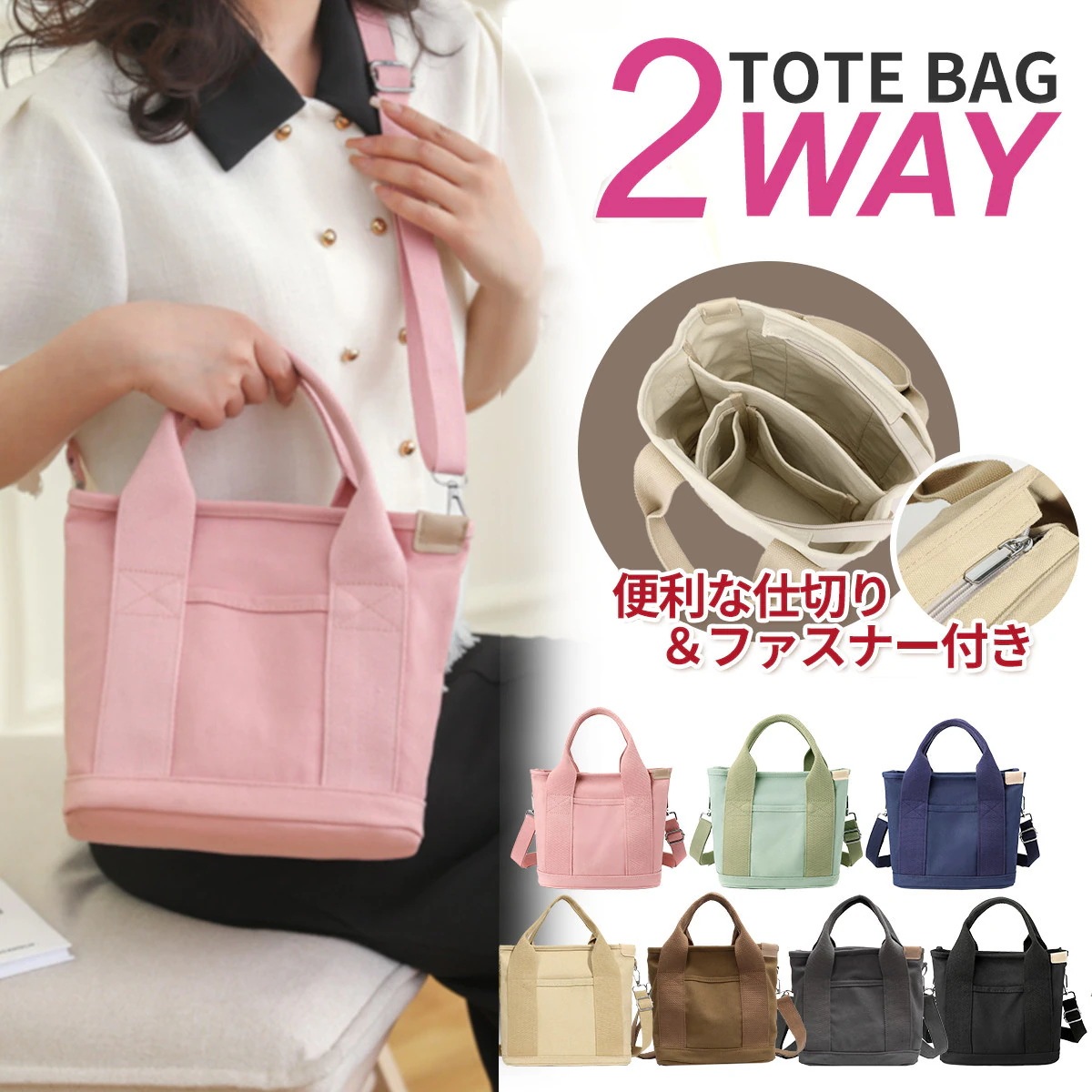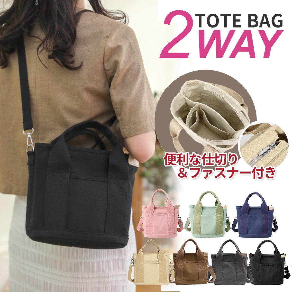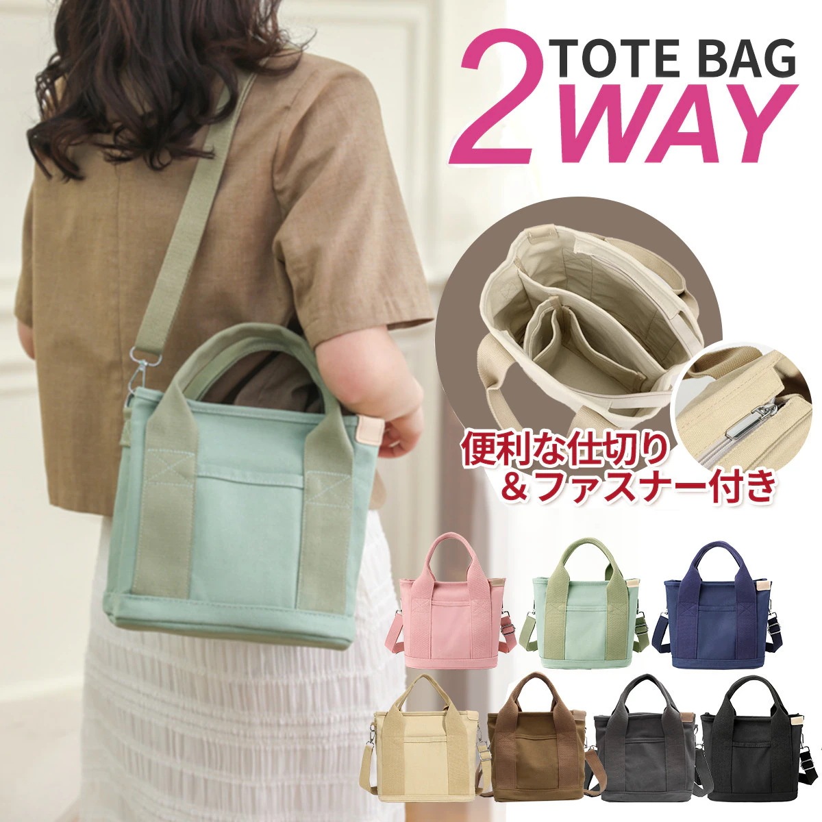 レディース 小さめ ショルダー 大容量 ポケット多い ファスナー付き 仕切り 帆布 ミニトートバッグ 2way キャンバス かわいい トートバッグ