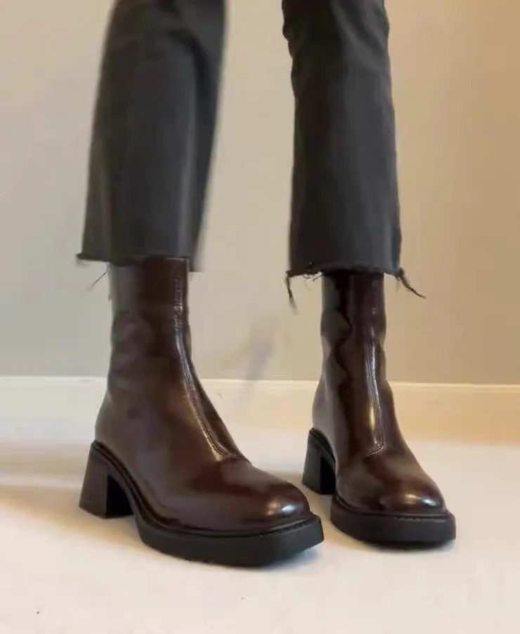 ハイヒール チェルシーブーツ 通勤 レディース ショートブーツ スクエアトゥ イギリス風 春 秋 新作 ショートブーツ 太ヒール