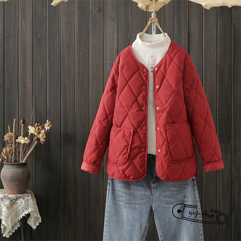 大人気 キルティングコート レディース 中綿コート 襟なし ショート丈 長袖 キルティング 無地 軽量 大きいサイズ 暖かい アウター かわいい ゆったり