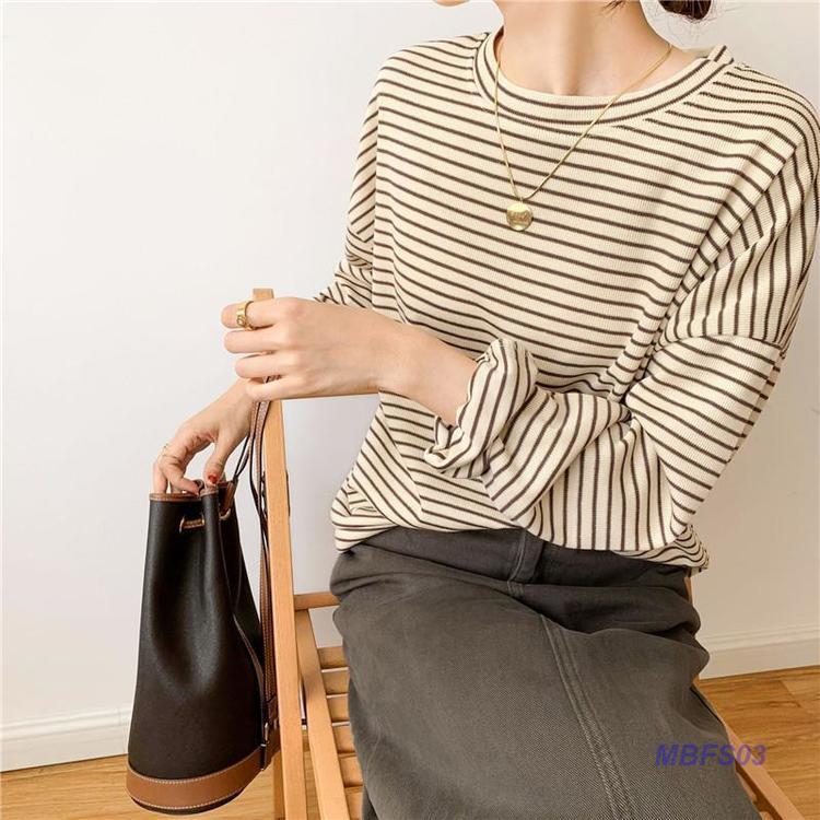 トレーナー レディース トップス スウェット 綿 ロンT クルーネック ストライプ アウター ゆったり 体型カバー 長袖 ボーダー 春秋 カジュアル