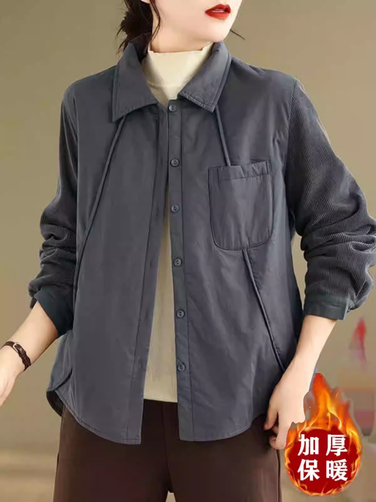 挟み綿 保温 長袖 シャツ レディース 秋冬 レトロ 立体 新作 トレンド パッチワーク ルーズ タータンカラー シャツ アウター