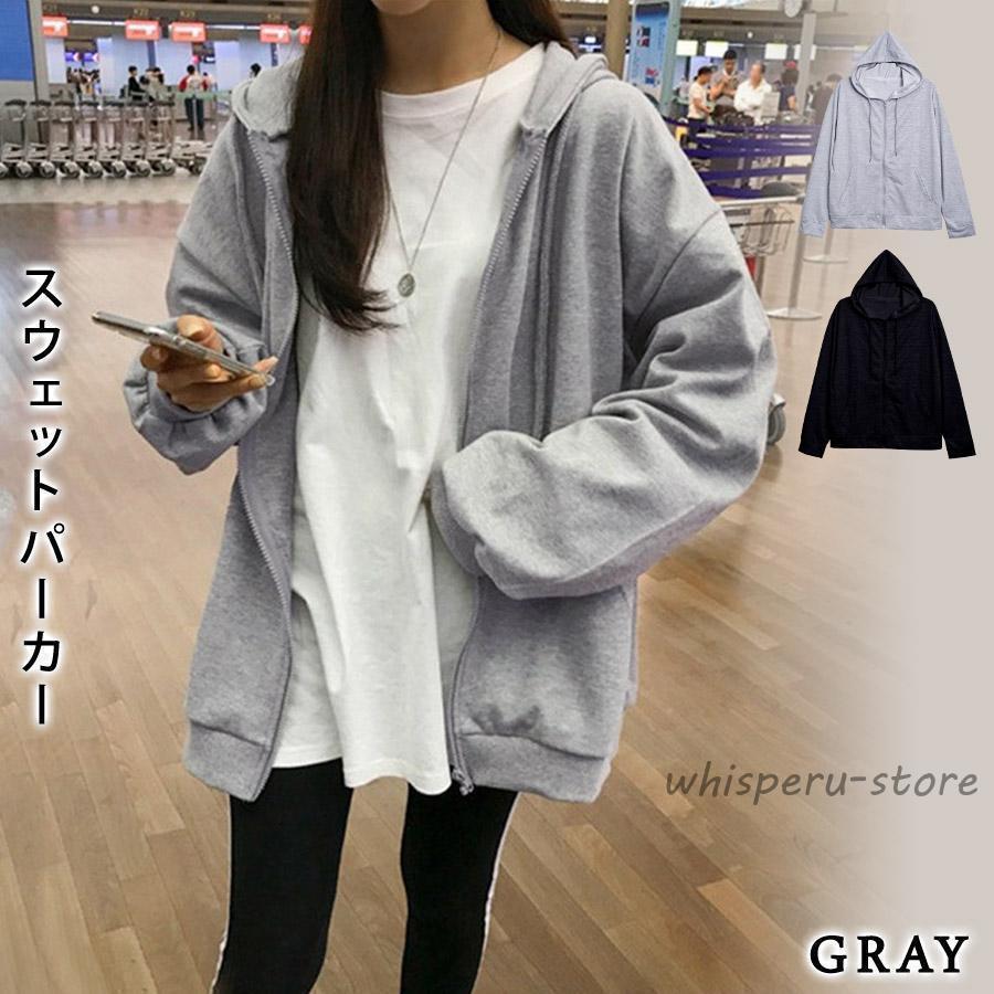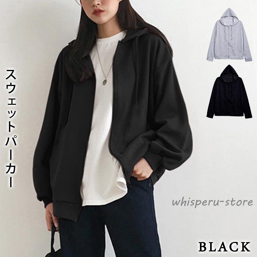 パーカー レディース 春秋 黒 長袖 ジップアップ パーカー アウター トップス 大人の魅力 無地 スウェットブラック グレー ジップパーカー 20代 30代