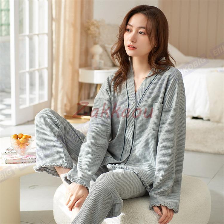 新品 大人気 レディース ルームウェア 前開き パジャマ 春秋 秋冬 長袖セット 安い シンプル 大人 ゆったり 上下セット 2点セット 部屋着 可愛い