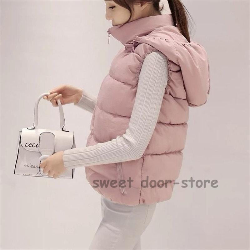 ベスト レディース 中綿 ダウンベスト 秋冬 フード きれいめ 防寒ベスト 着痩せ カジュアル シンプル 通勤 通学 細身
