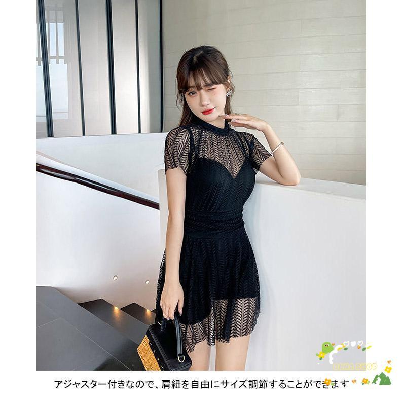 水着 レディース ワンピース オールインワン レース 無地 透け感 パッド付き ワイヤー入り 背中開き 体型カバー シンプル 快適 夏用