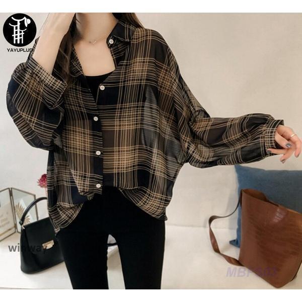 シャツ ブラウス ボリュームスリーブ チェックシアーシャツ チェック柄 ミドル丈 人気商品超目玉 紫外線対策 UVカット 冷房対策 夏 トップス ゆったり 涼しい