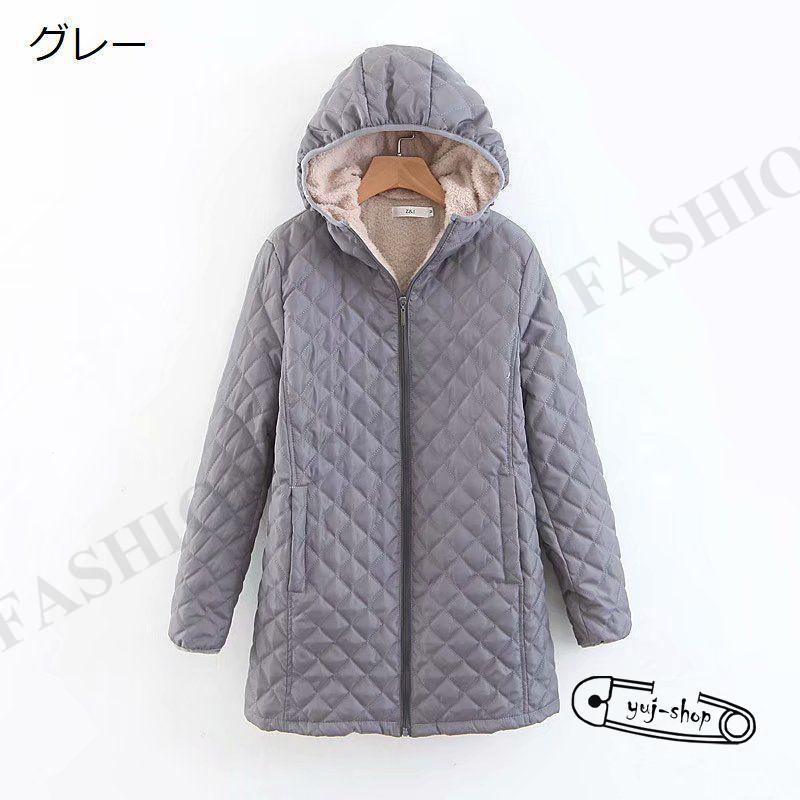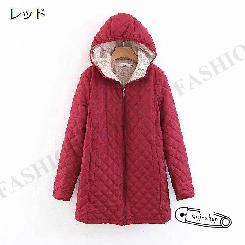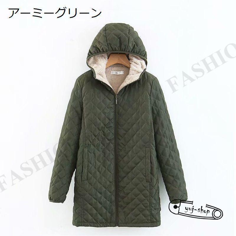 人気沸騰新柄追加 キルティングコート レディース 女性 アウター コート ロングジャケット キルティングジャケット キルト フード付き 中綿入り ジップアップ 内ボア