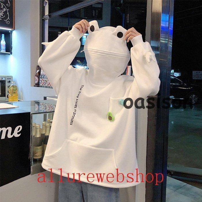 高級な質感 かえる柄 パーカー かわいい 裏起毛 カエル目 ロング トレーナー レディース 萌え トップス 森ガール ゆったり スウェット
