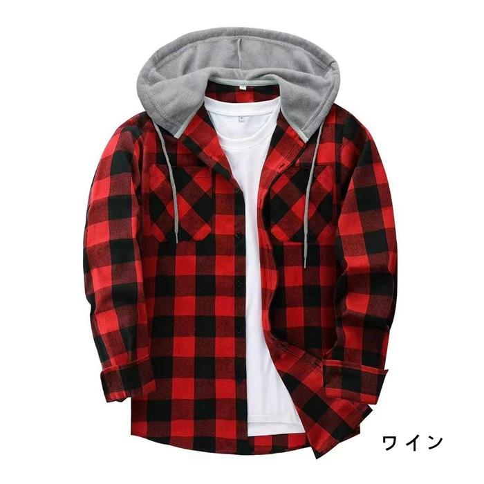 シャツ パーカー 長袖 シャツパーカー メンズ ネルシャツ フード付き チェックシャツ 上着 羽織 カジュアルシャツ