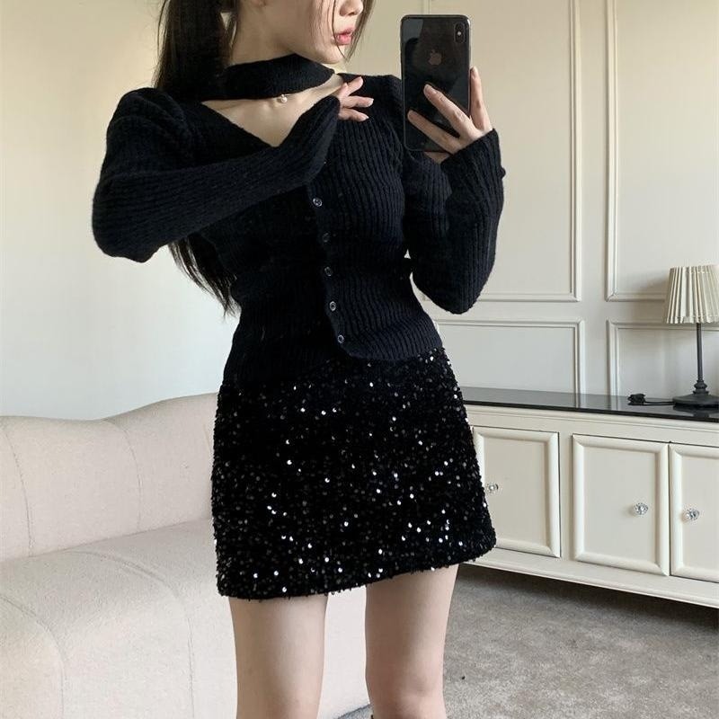 2025秋冬新作シンプル Vネック ニット長袖トップス 人気なリブニットレディース デザイン感 セーター フレンチニットカーディガン アウター 快適 通勤