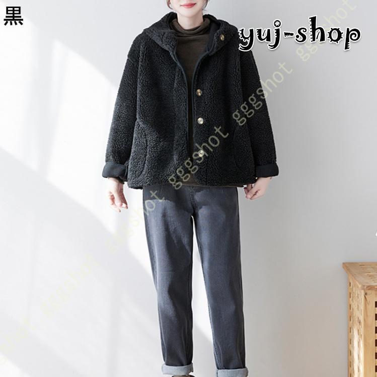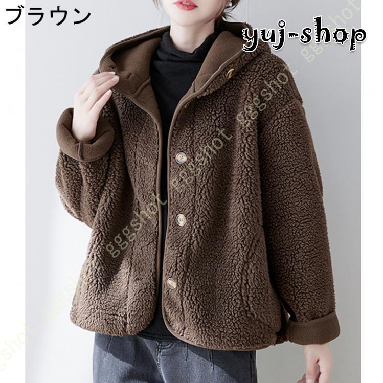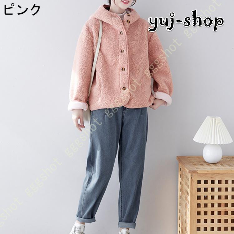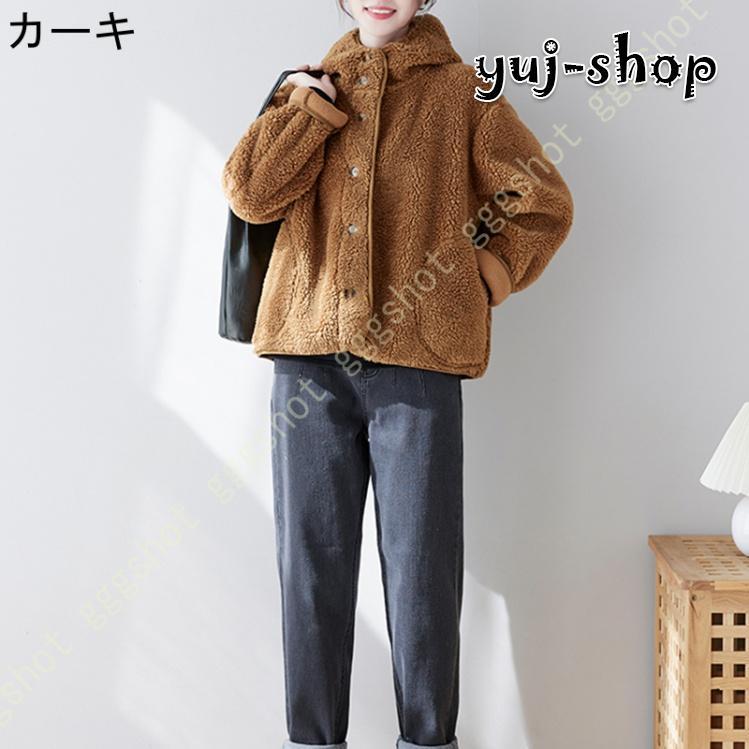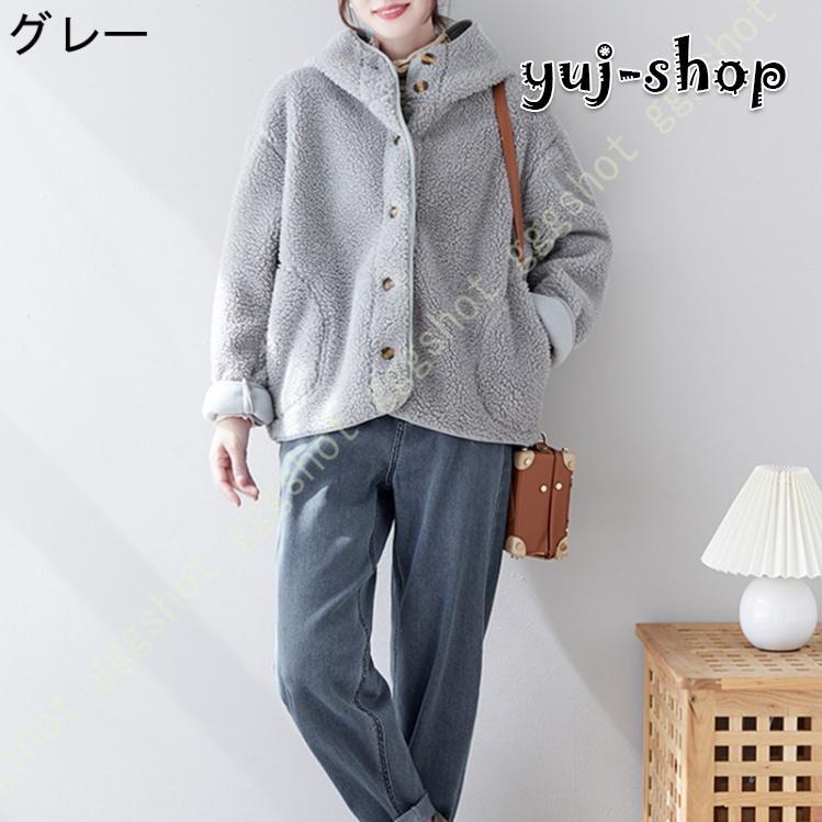 入荷 コート レディース ボア ジャケット ゆったり ブルゾン 厚手 もこもこ 大きいポケット 可愛い 暖か おしゃれ 体型カバー 保温 アウター フード付き ハイネック