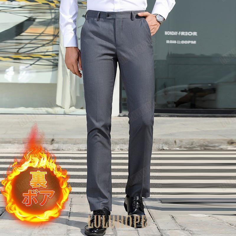 スラックス メンズ パンツ 通勤 裏ボア 冬 ビジネスパンツ テーパード 家庭洗濯可 紳士 スリム 洗える カジュアル チノパン フォマール プレゼント