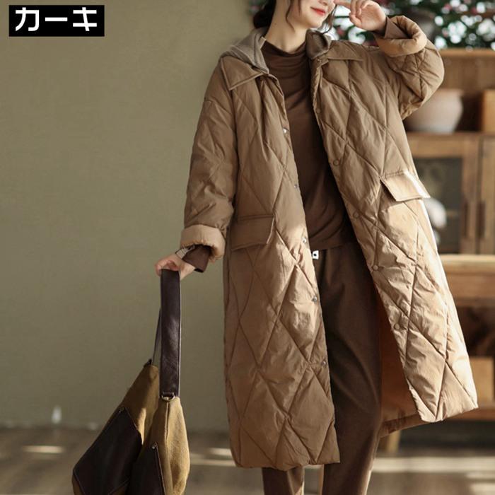 超目玉新品 ダウンコート レディース ロング丈 ロングコート ダウン ジャケット フード付き アウター トップス 無地 カジュアル おしゃれ