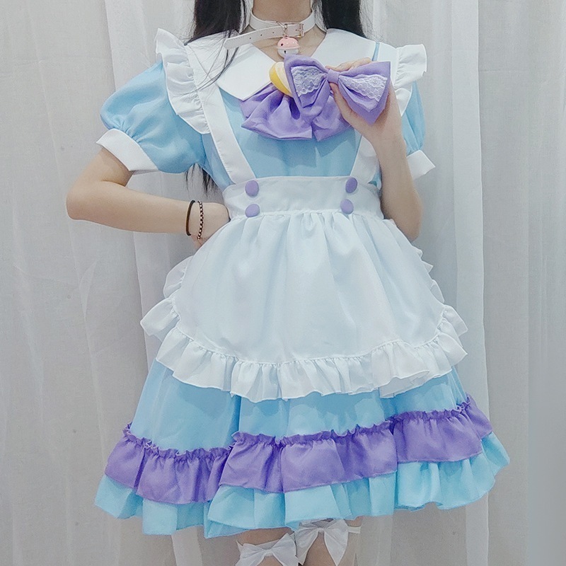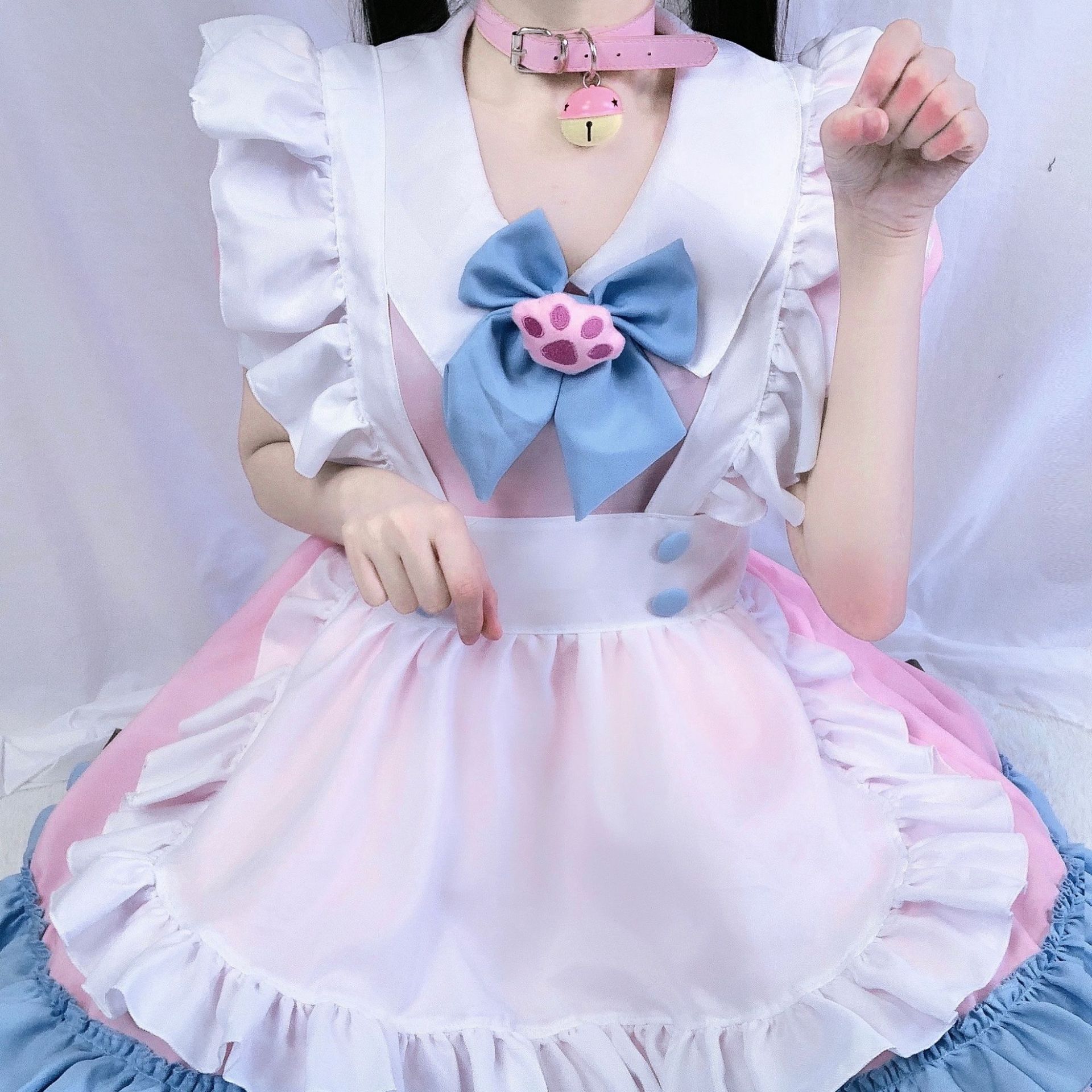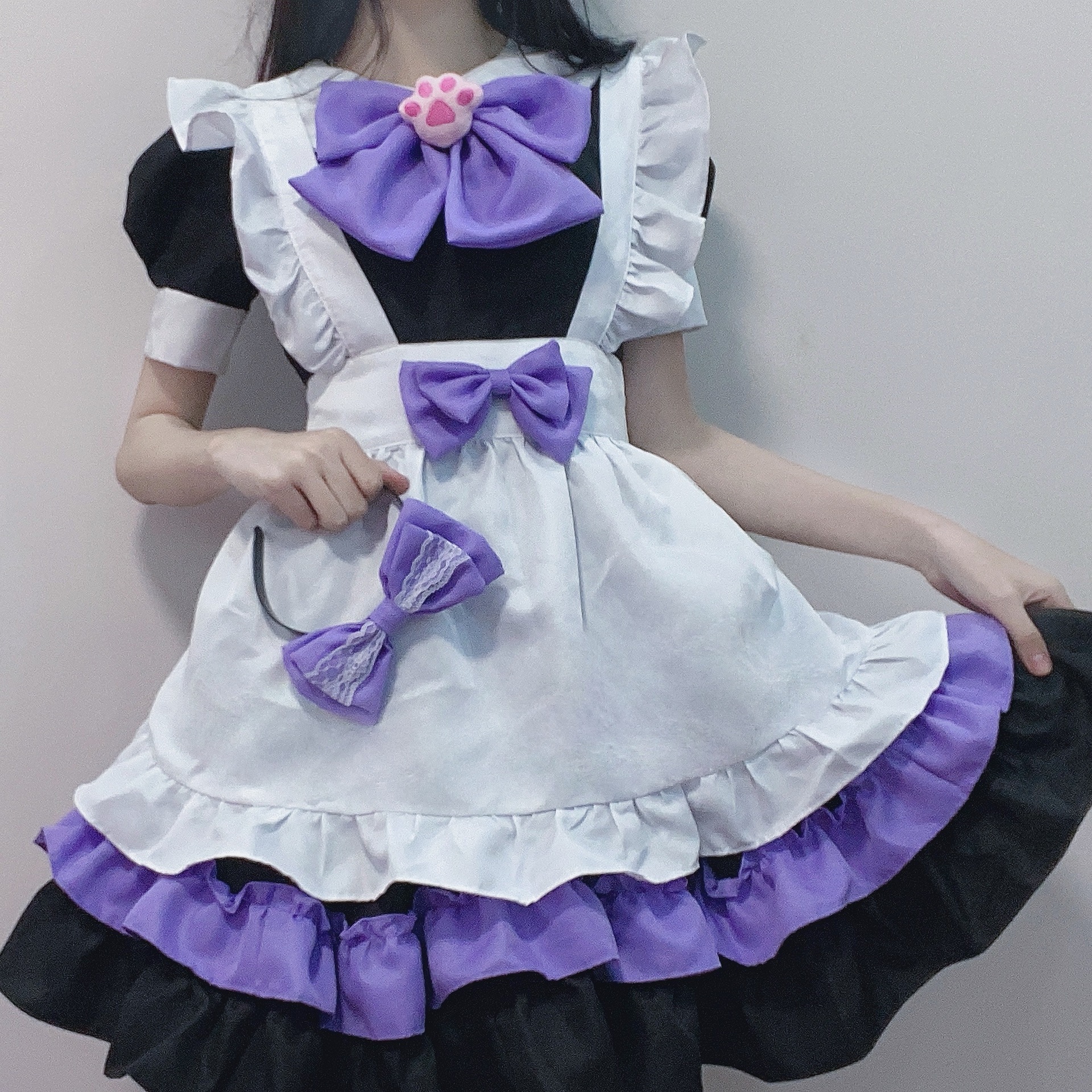大ヒット中韓国にじげんメイド服可愛い白黒婦人服ワンピース
