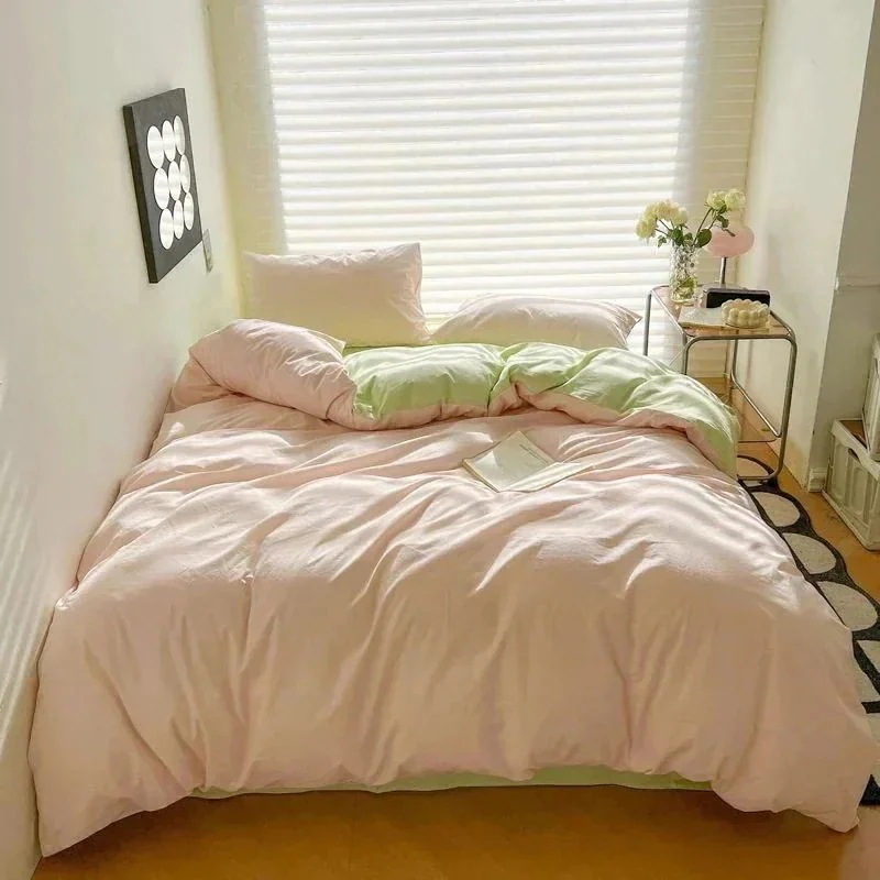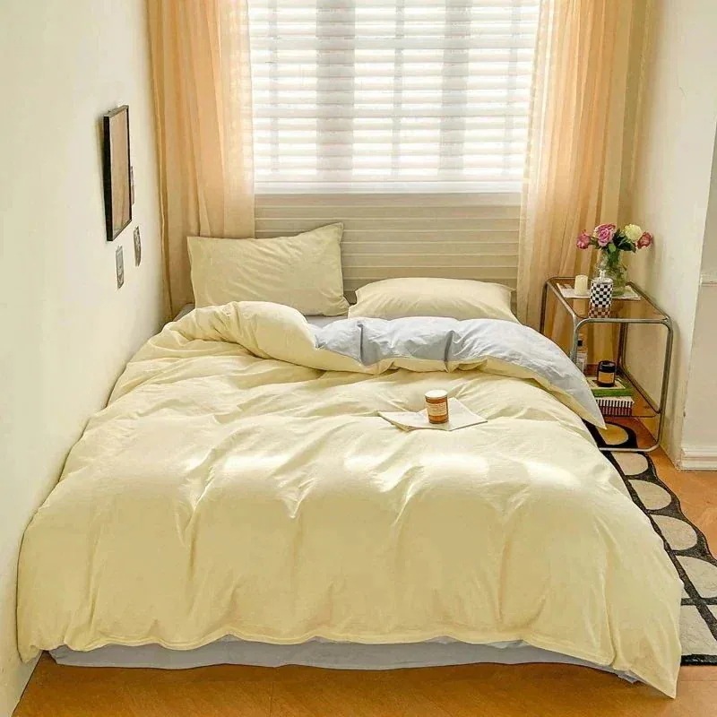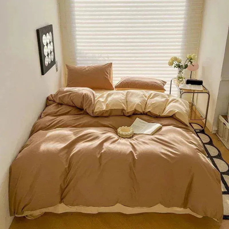 【3日出荷】本日限定人気 2025 新 布団カバー 掛け布団カバー ベッドカバー スモールフレッシュベッドシーツ3点セット アイスシルク布団カバー帽子モデル学生寮ベッド4点セット orange