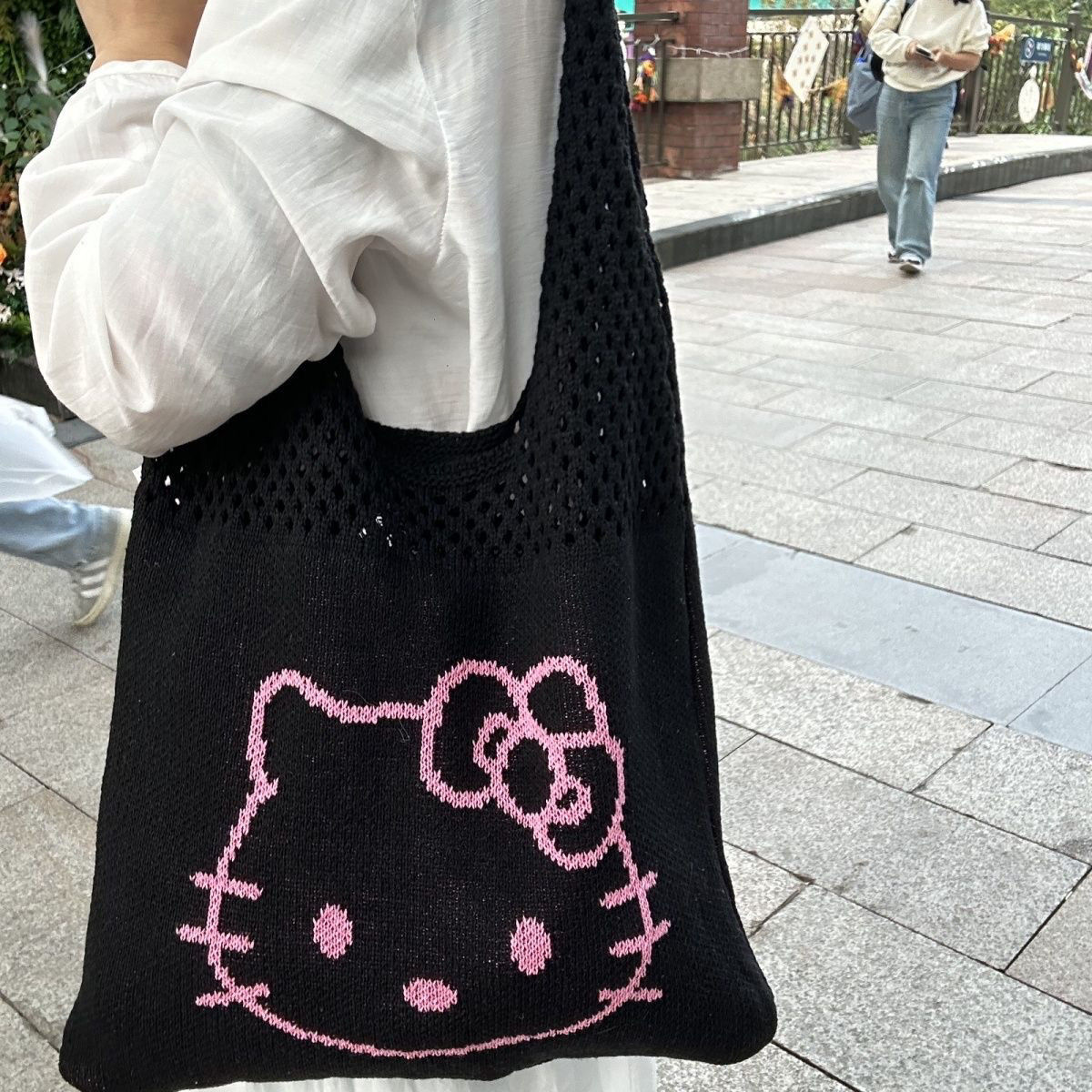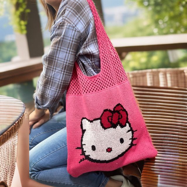 毛糸 韓国 バッグ 5color BLACK PI ジスちゃんJIS 愛用 キティちゃんショルダーバッグ 4color size:34*5cm