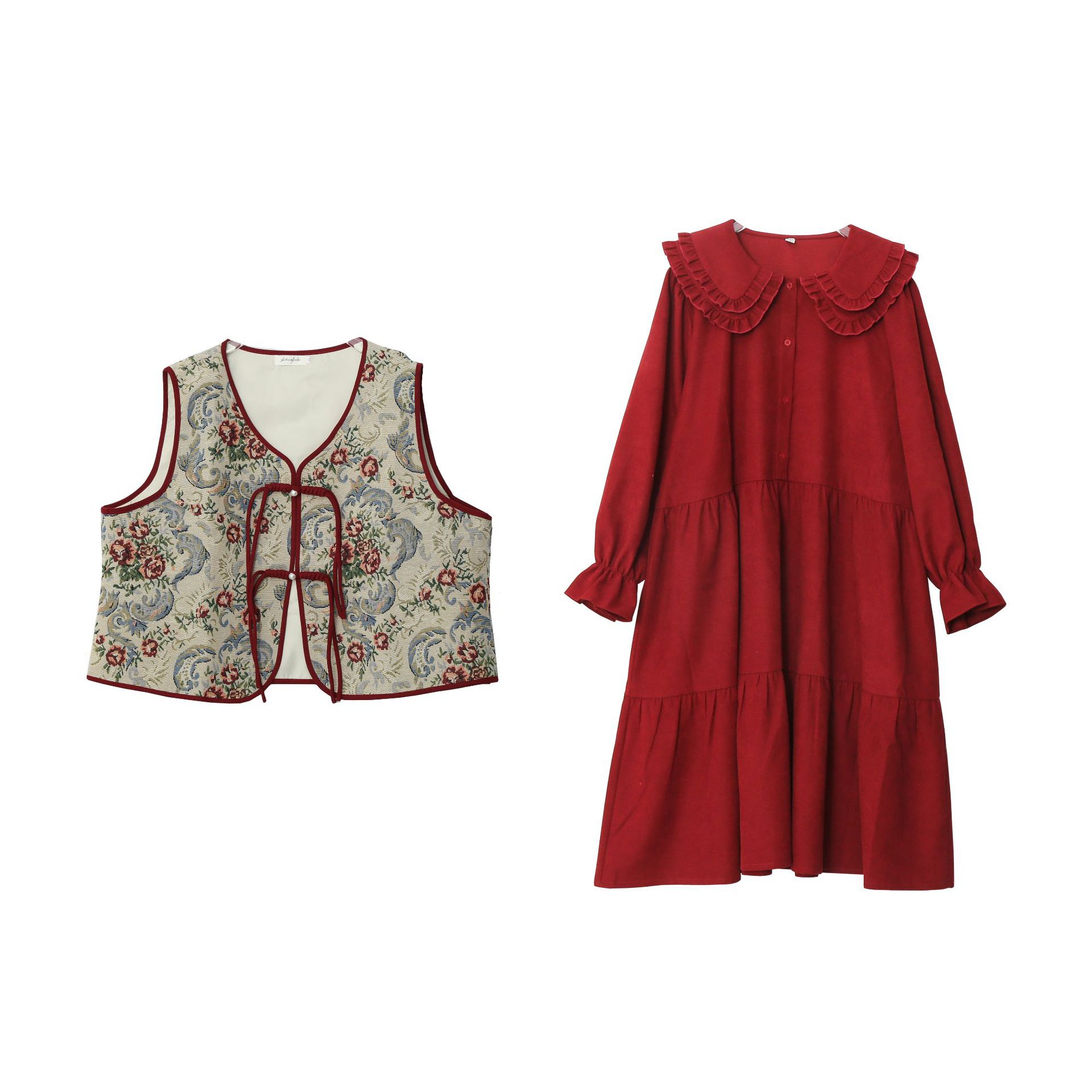 【ぽちゃまに】 2025秋新品 上下セット 中華風 ベスト+スカート 体型カバー 大きいサイズ チャイナ風 レディース セットアップ