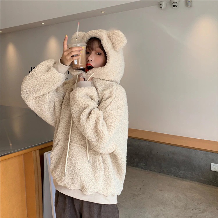 秋冬 パーカー アウター フード付き くま耳デザイン 可愛い ゆったり 長袖 トップス 快適 人気 レディース
