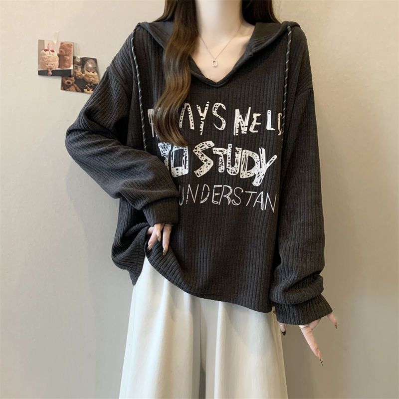 プラスサイズ女性用フード付き長袖Tシャツ春秋冬新作ユニークで洗練されたデザインスリム効果のあるアウタートップス