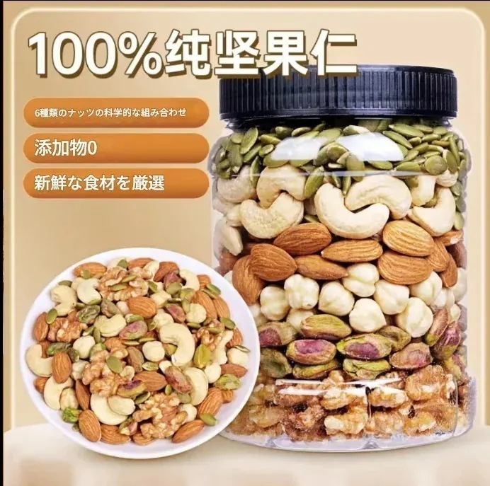 ミックスナッツ510g オリジナルミックスピュアナッツ 6種類のナッツ無添加 ミックスナッツ 無塩 無油アーモンドカシューナッツクルミナッツ無塩缶詰 子供のおやつ レジャー ドライフルー