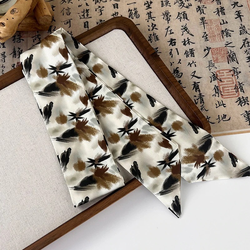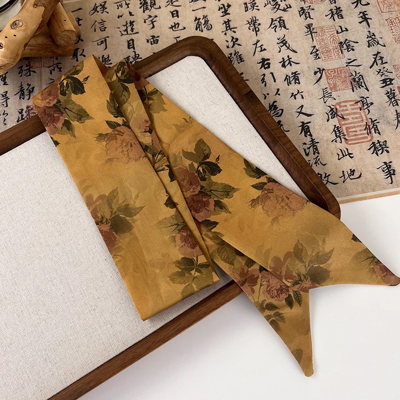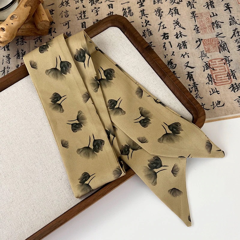 レトロなシルクスカーフロングリボンメイラードカラーリボンヘアゴム