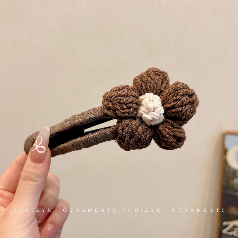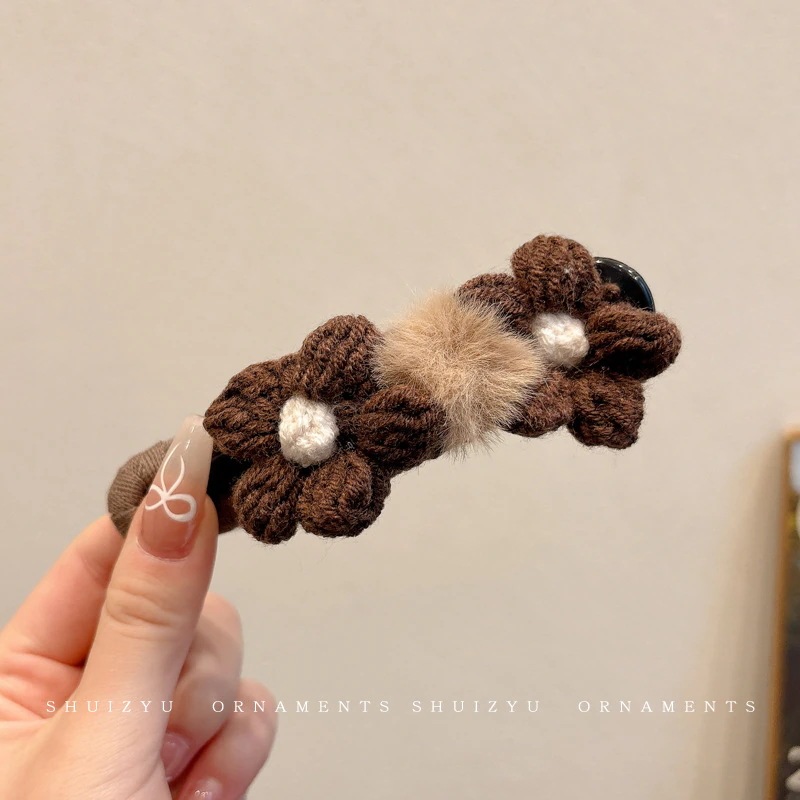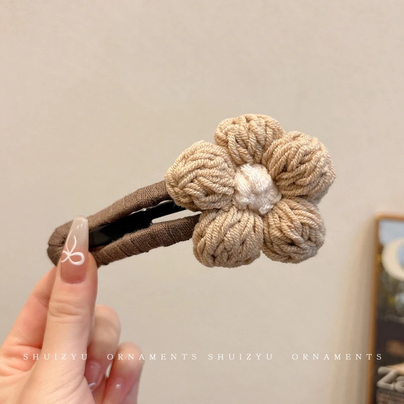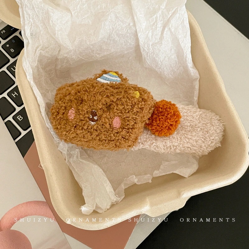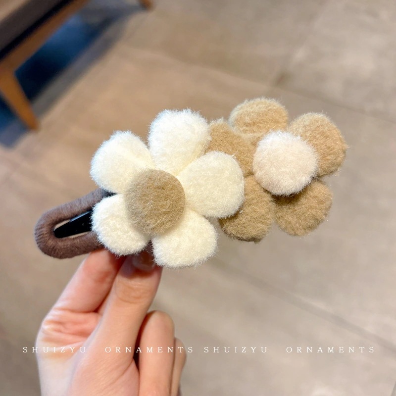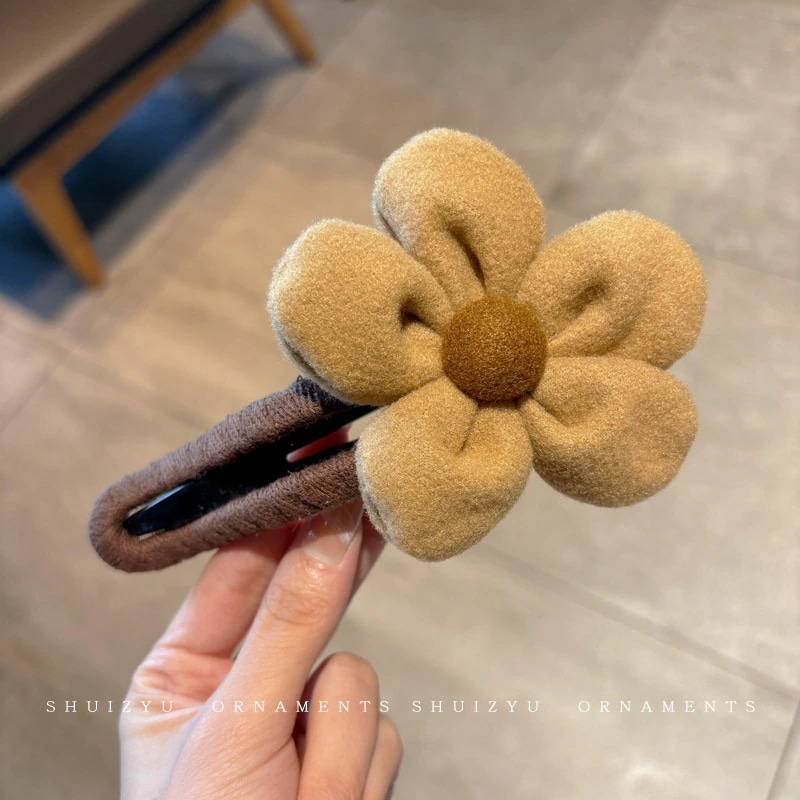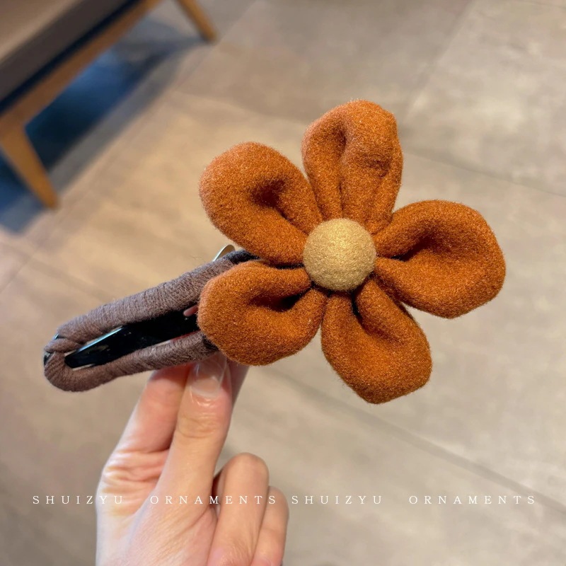 ミルキーコーヒー色のぬいぐるみカモノハシクリップ女性用ウールフラワーラージヘアピン後頭部用一言ヘアピン付き