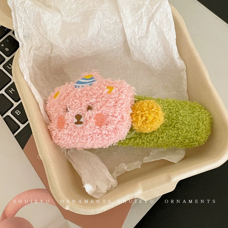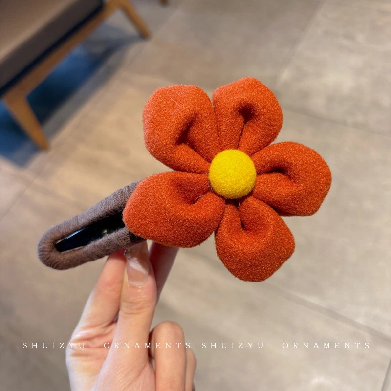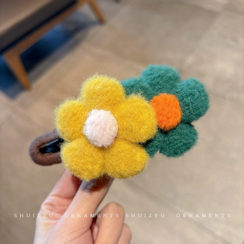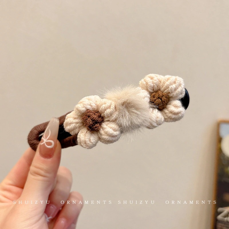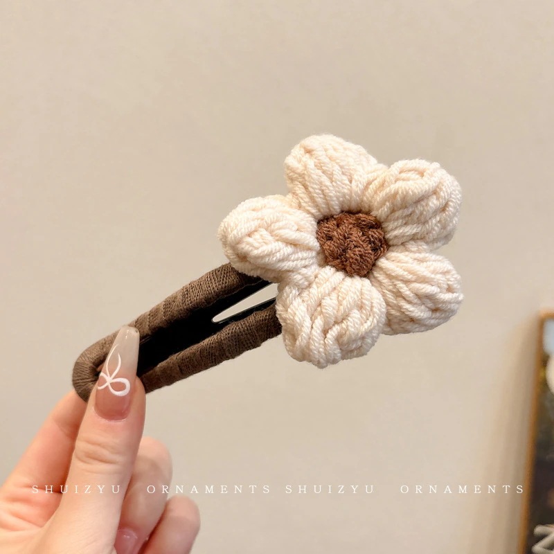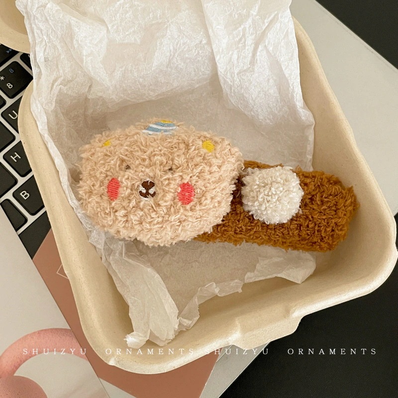 ミルキーコーヒー色のぬいぐるみカモノハシクリップ女性用ウールフラワーラージヘアピン後頭部用一言ヘアピン付き