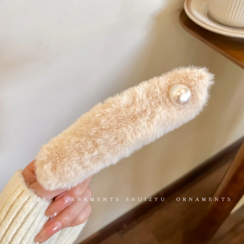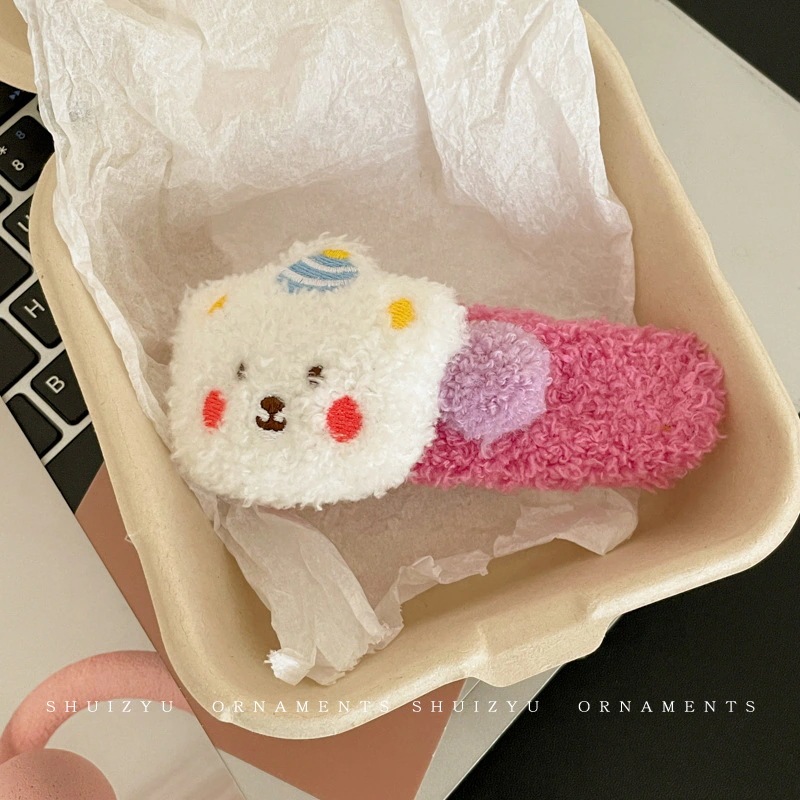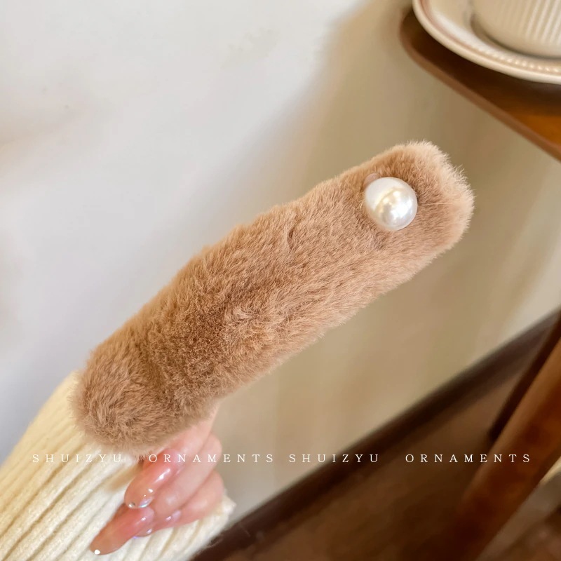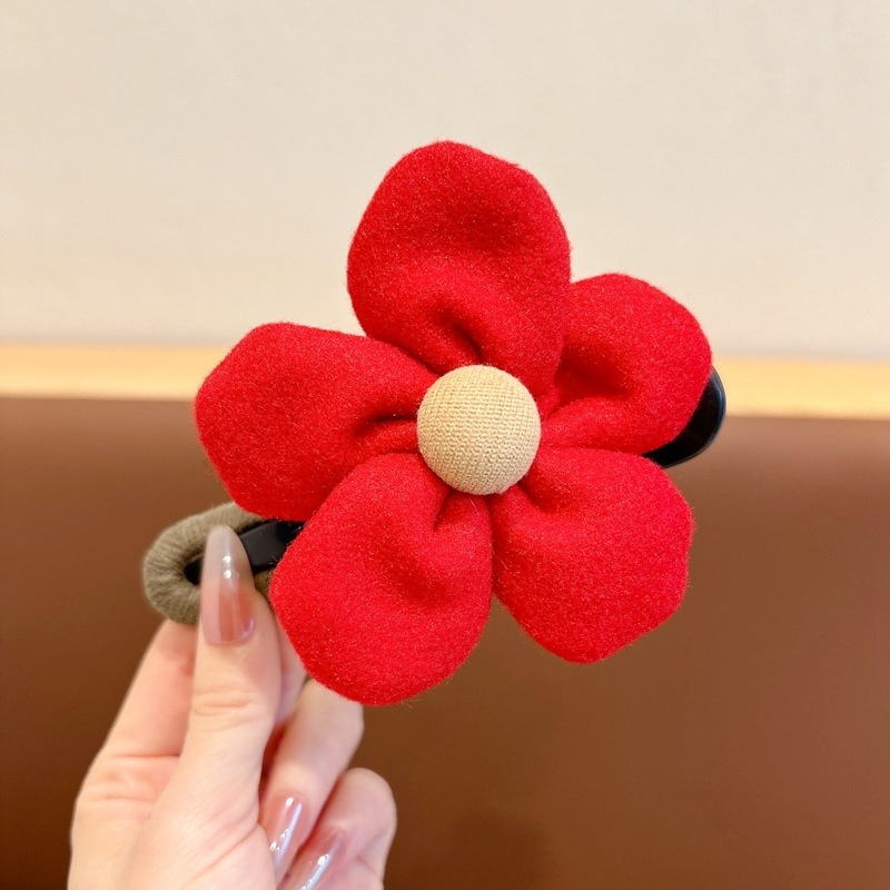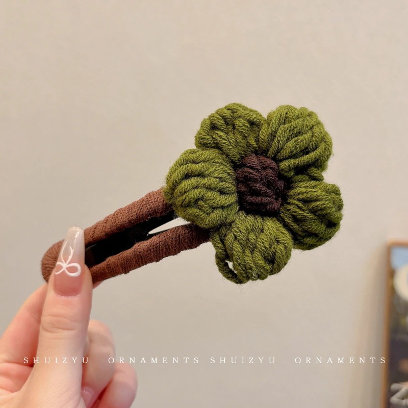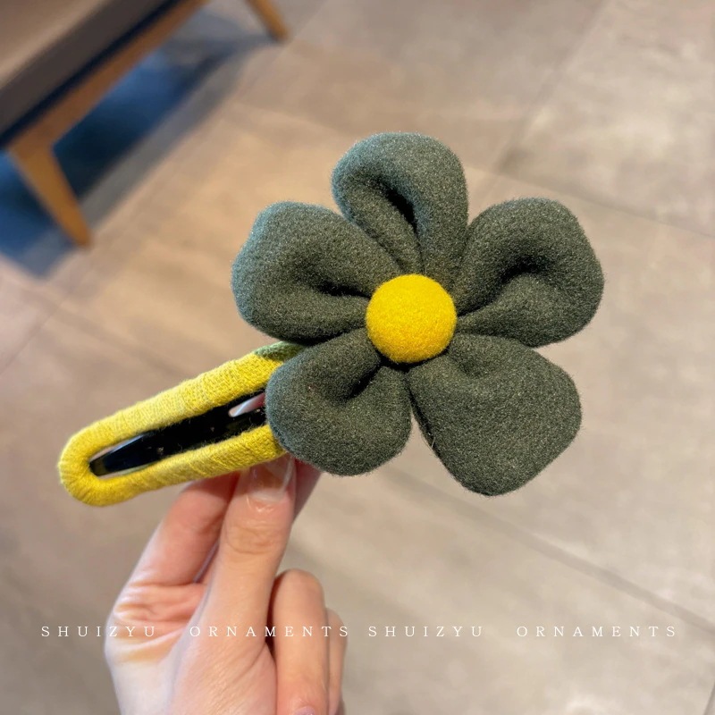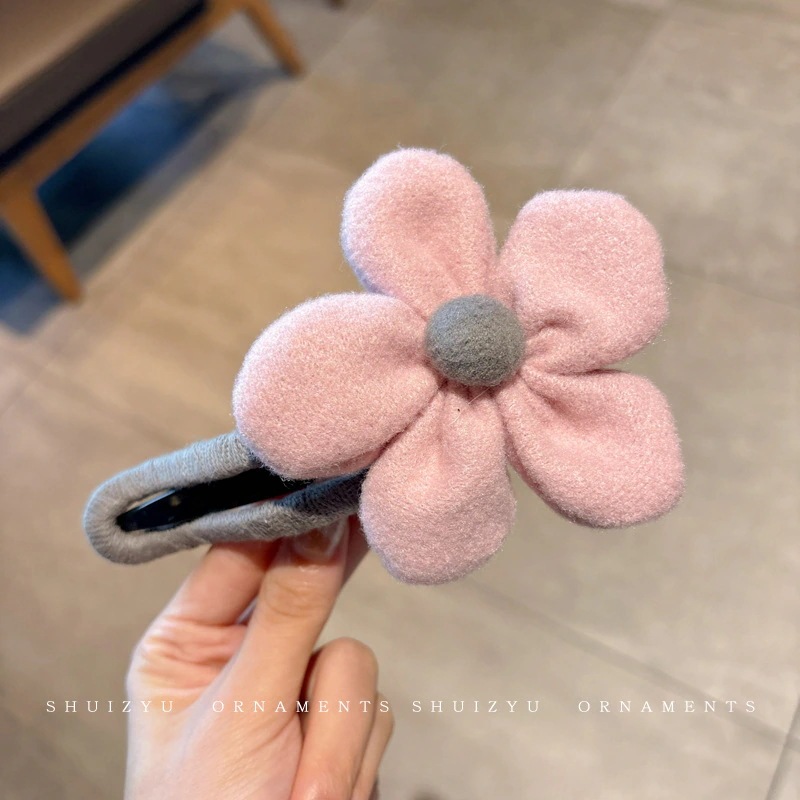 ミルキーコーヒー色のぬいぐるみカモノハシクリップ女性用ウールフラワーラージヘアピン後頭部用一言ヘアピン付き