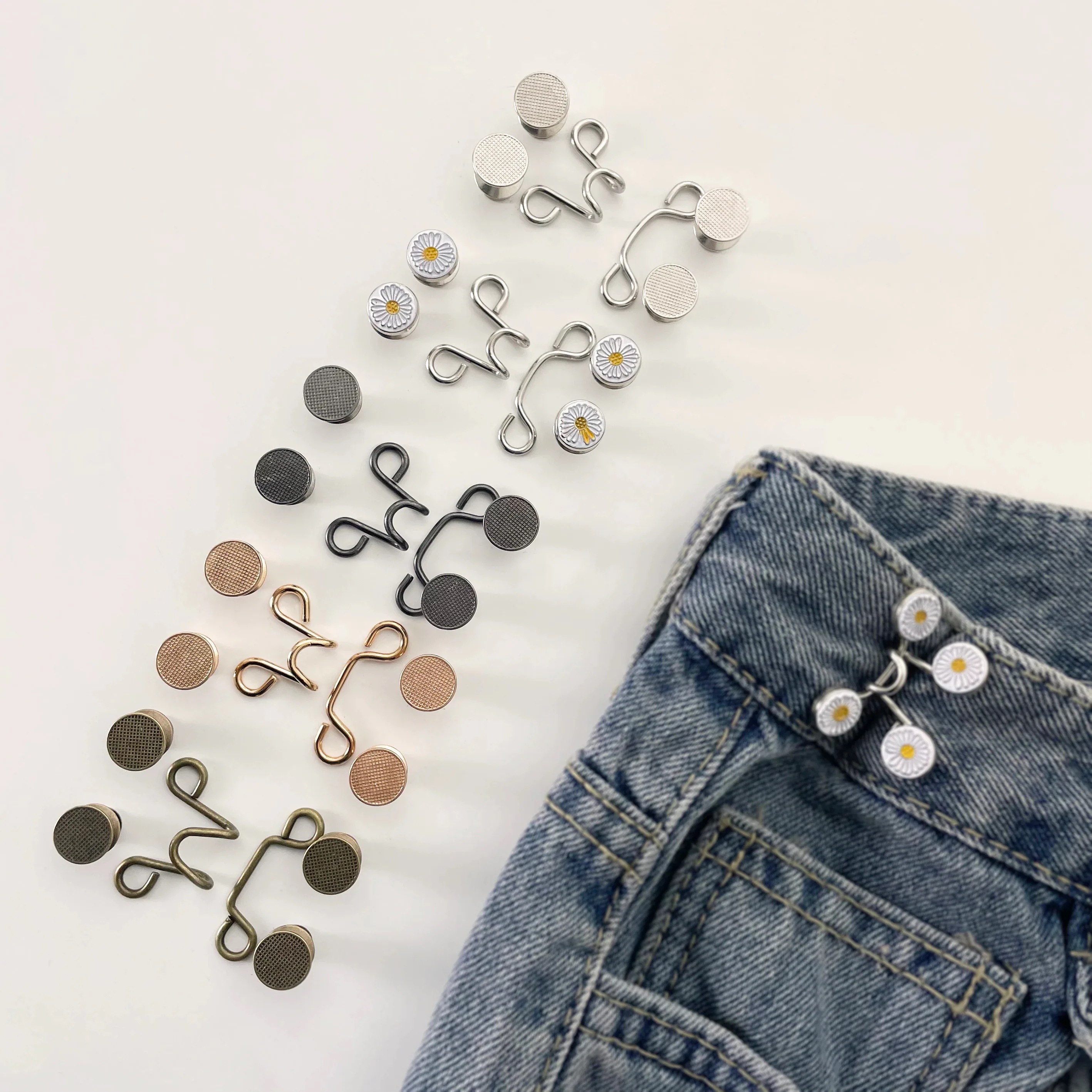 PUffy thing5個セット ウエスト調整ピン ウエストアジャスター サイズ調整 ジーンズ デニム 簡単 お直し ズボン [選べる5色]