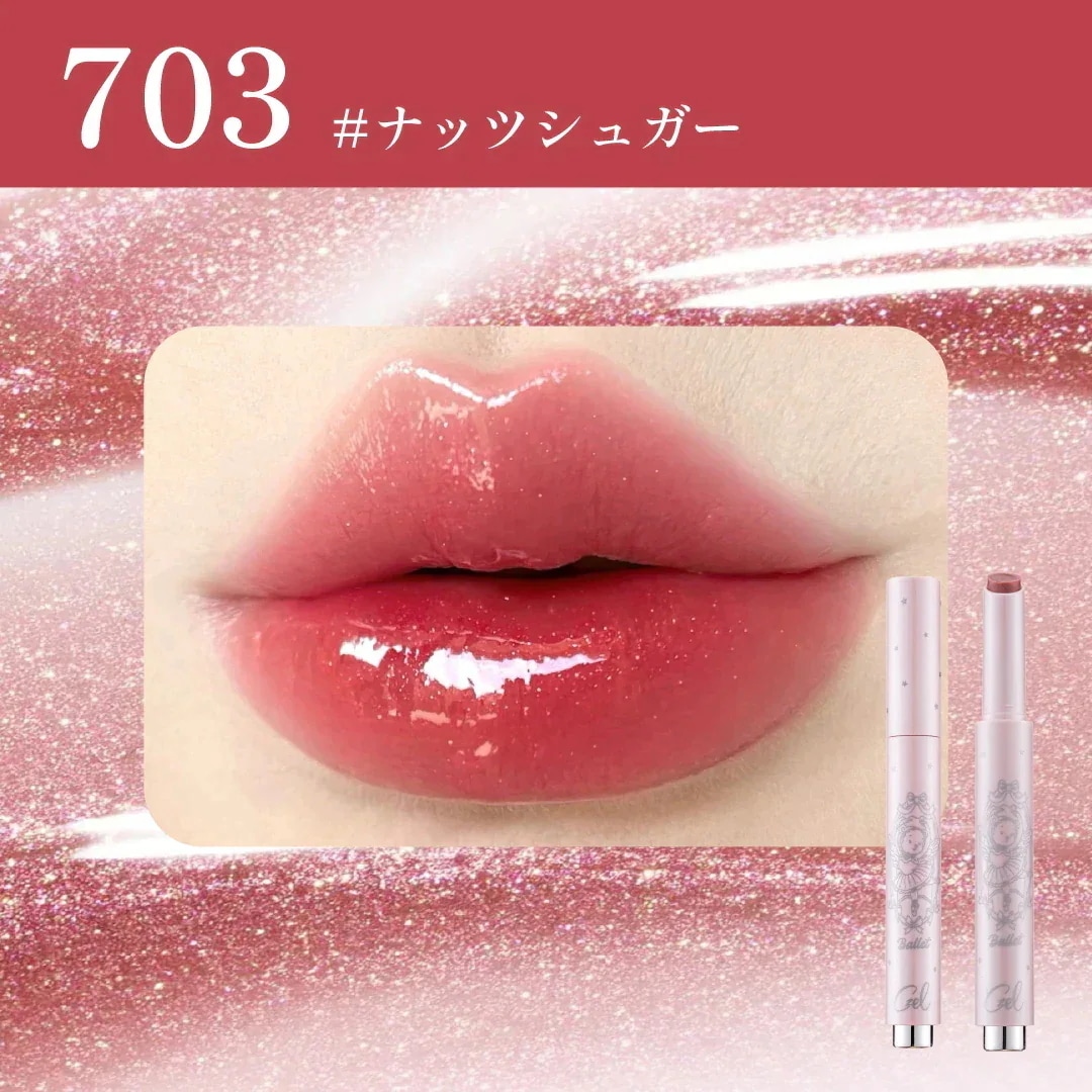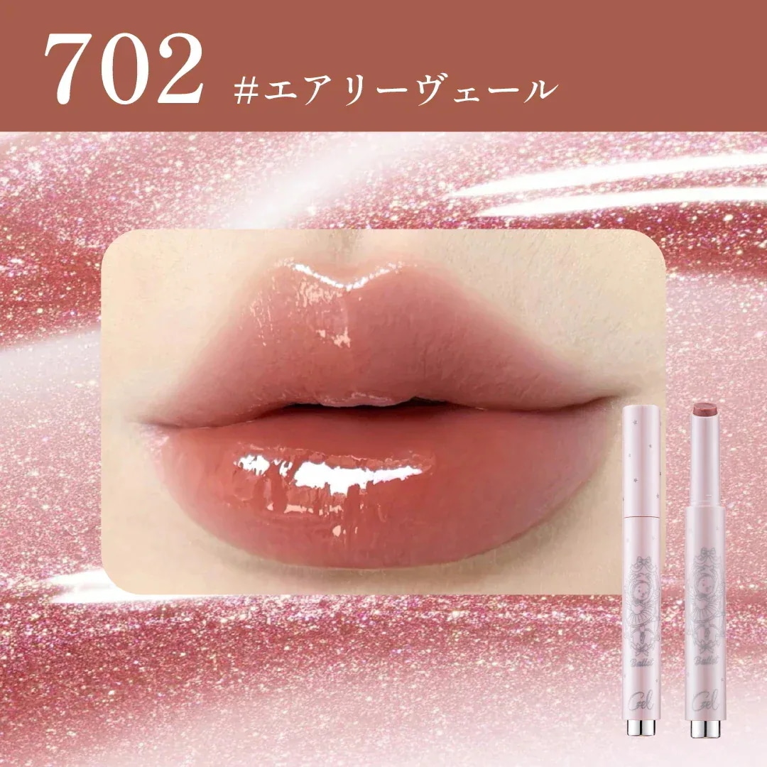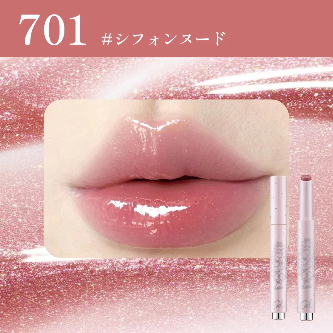 サンプルマーケットで当選しました!!こんな素敵な商品ありがとうございます😭色味は701でニュートラルなカラーでした!ブルベ、イエベ問わず使えそうな色味です!ゴールドのラメが入っていて、唇がプルプルに見えます!