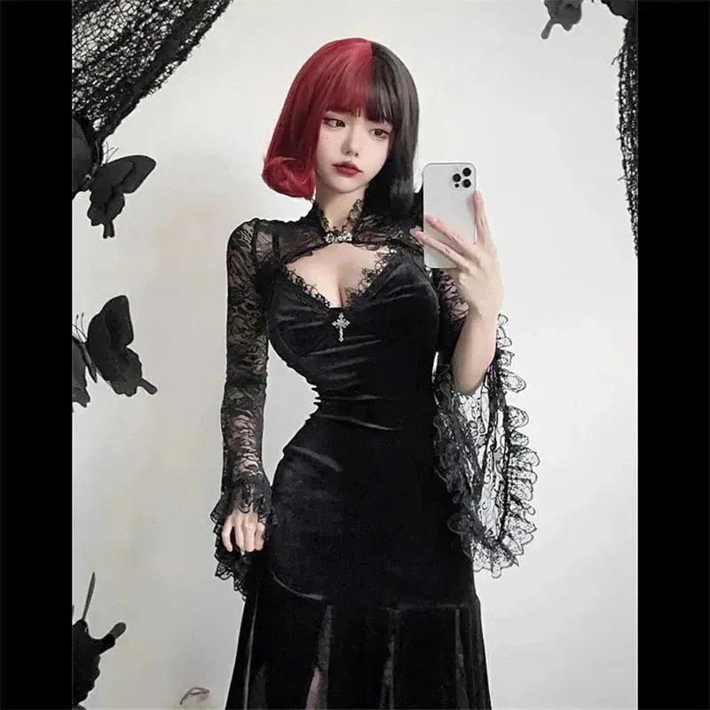 大人気アハロウィンロリータ 学園祭 文化祭 韓国ファッション 女王様 魔女 (2点セット) コスプレ レース ハロウィン ワンピース 暗黒系 短纳期 巫女