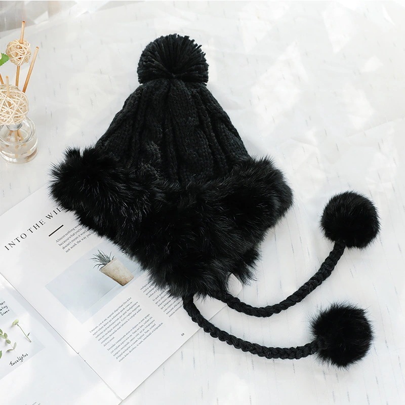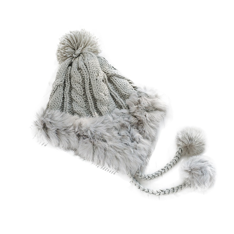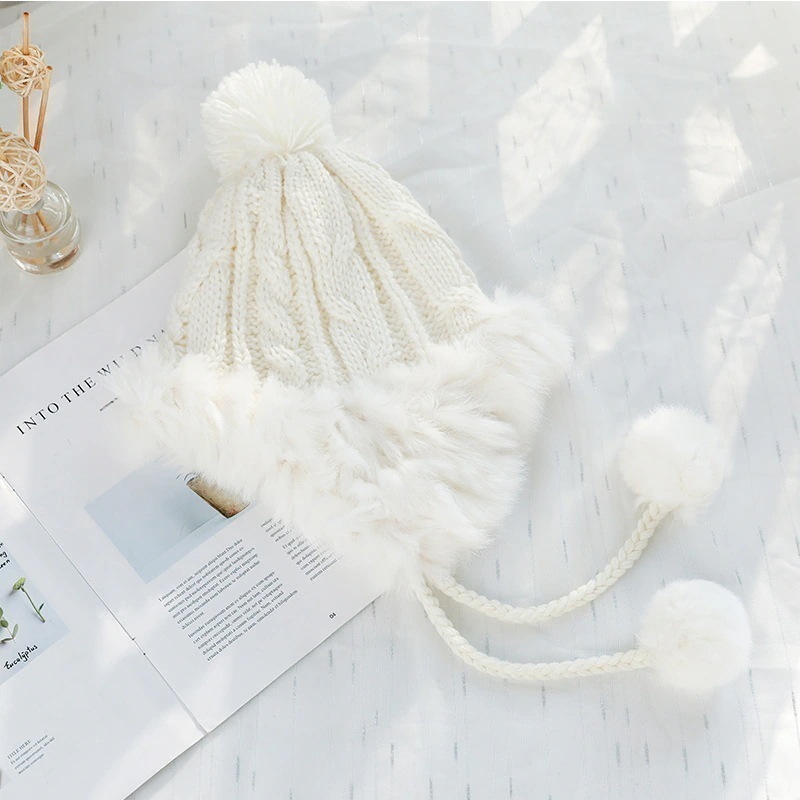 即納韓国ファッション可愛いニット帽子耳あてニットキャップウサギの毛レディース保温防寒耳当て