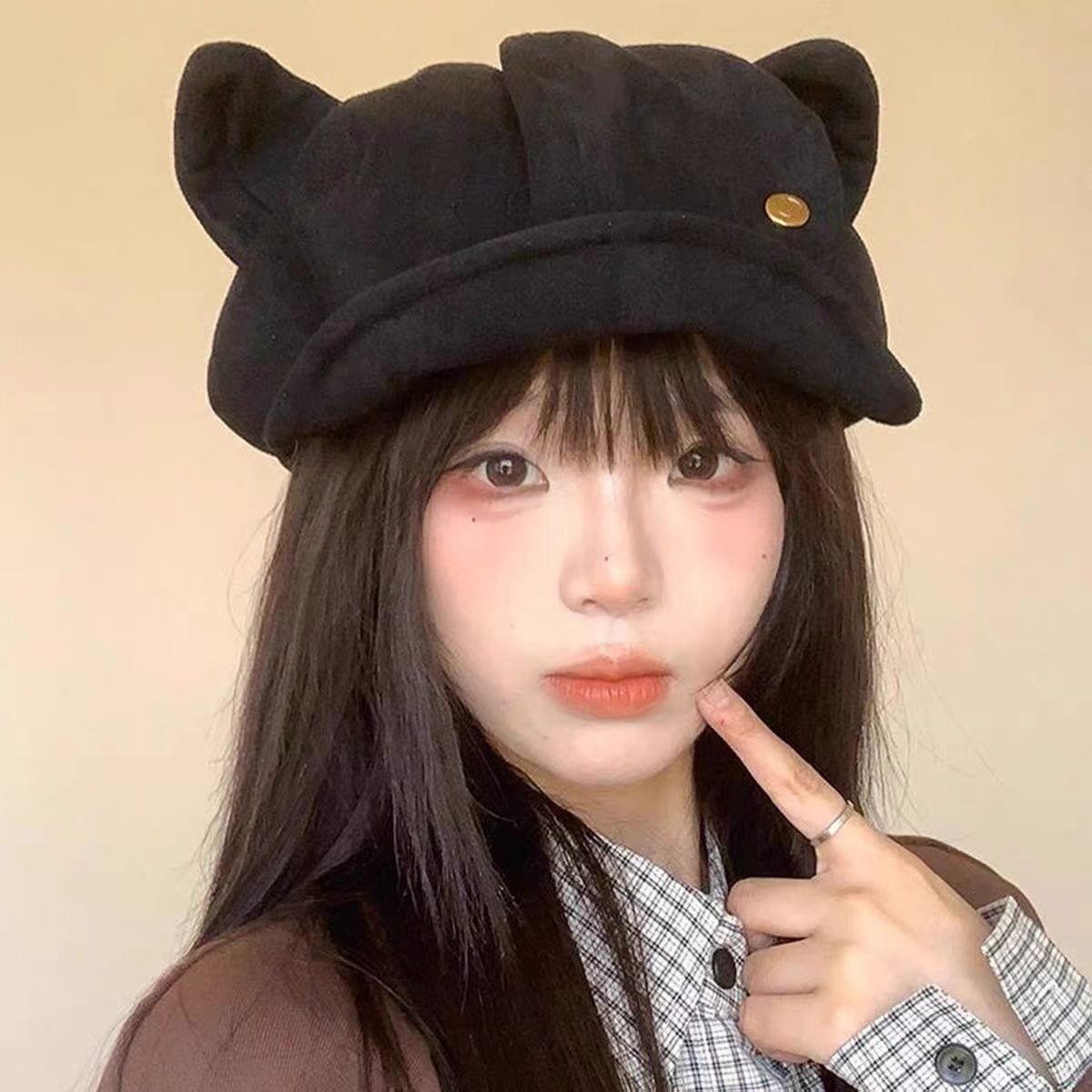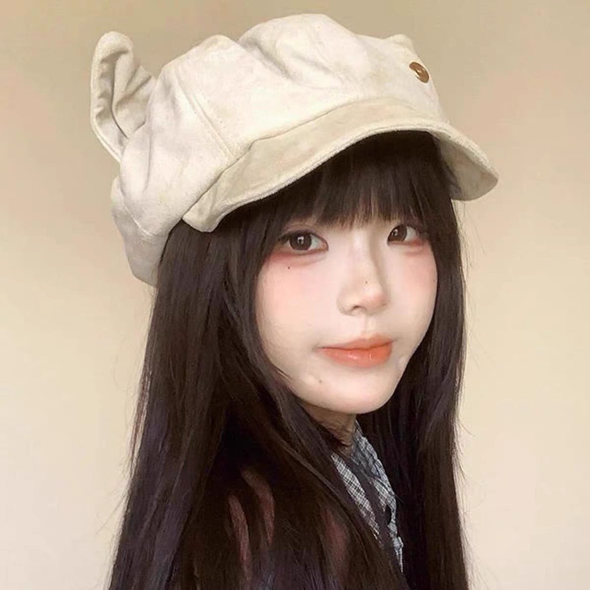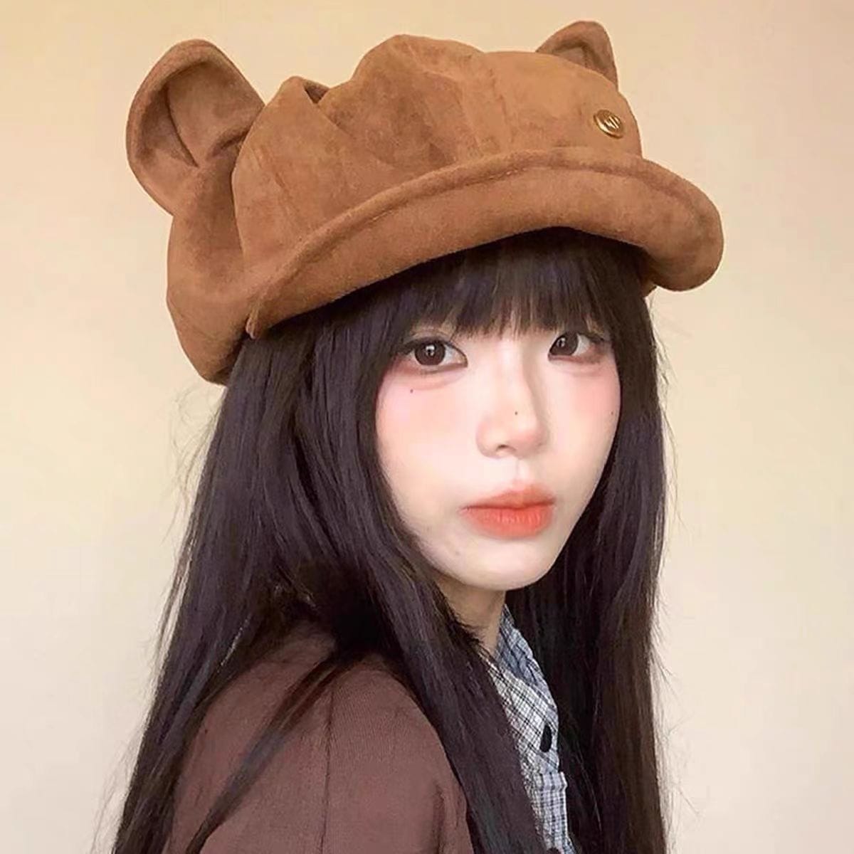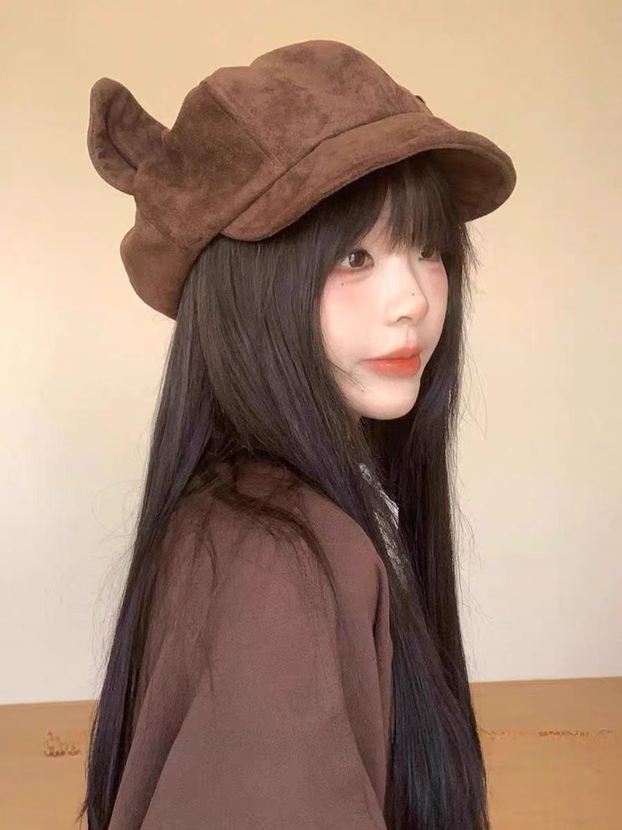 【2025 秋冬新作】レトロスエード猫耳ベレー帽 レディース 顔痩め効果 八角帽風 アーティスト帽 カジュアル百搭