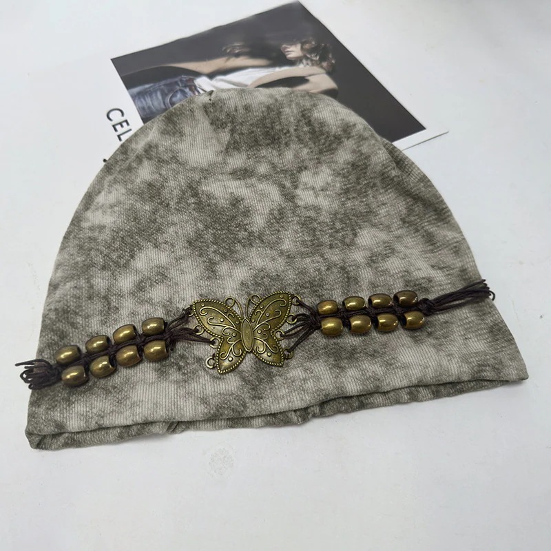 【2025 秋新作】アメリカンレトロタイダイ美拉德風 フリンジニットキャップ レディース ビッグヘッド対応 顔痩め効果 ローズンハット 日常百搭