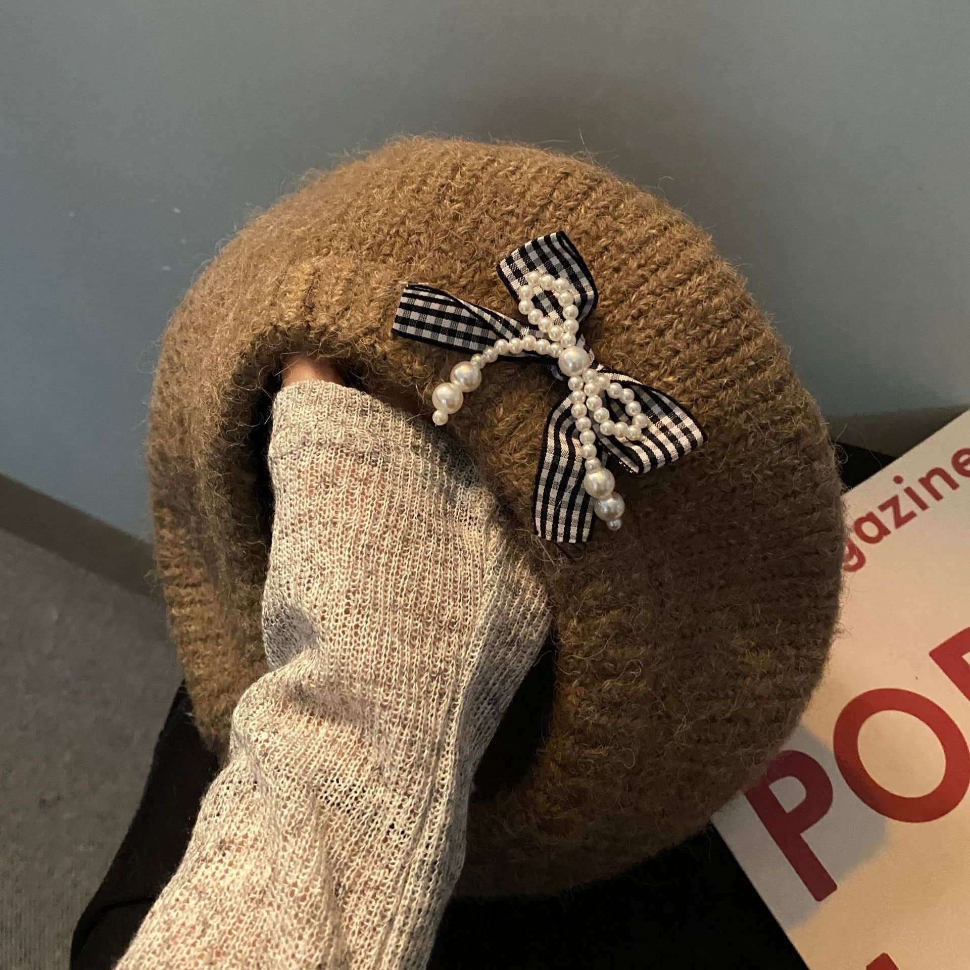【2025 秋冬新作】レディーススイートリボンニットベレー帽 フリース入り保温 ビッグヘッド対応 アーティスト帽 ファッション百搭 日常・デート兼用