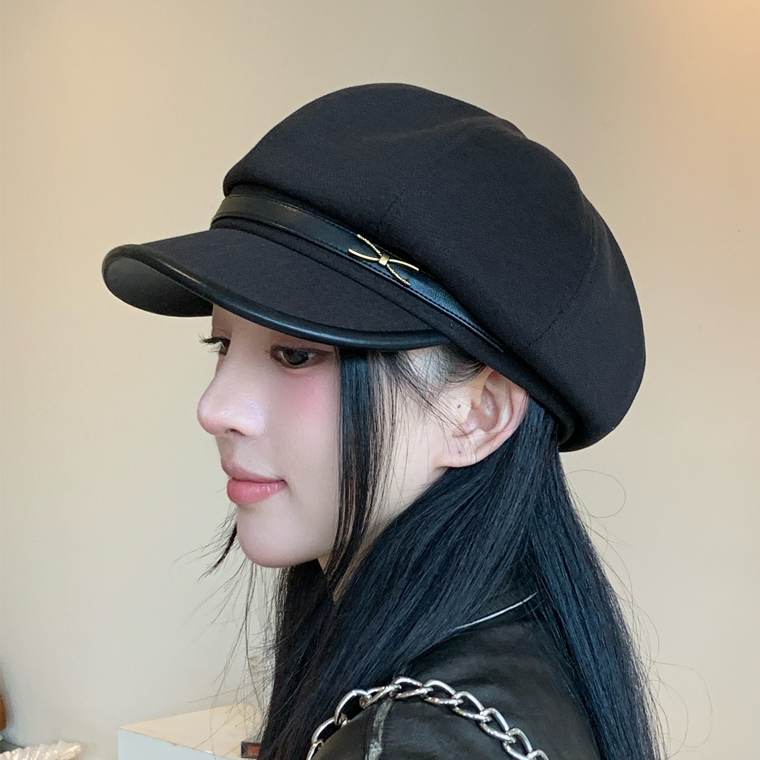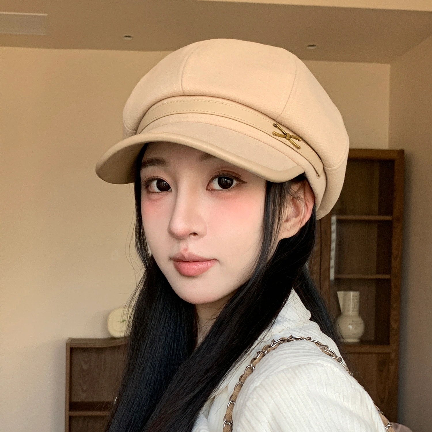 レディース秋冬新款復古八角帽 イギリス風ベルト装飾 ニット素材 文芸風百搭 顔痩め効果 カジュアル・通勤着用 OK