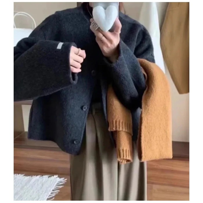 人気アウター 秋冬の新作韓国版ゆったりリバーシブルラシャコート女性ショート丈小柄ファーコート女性