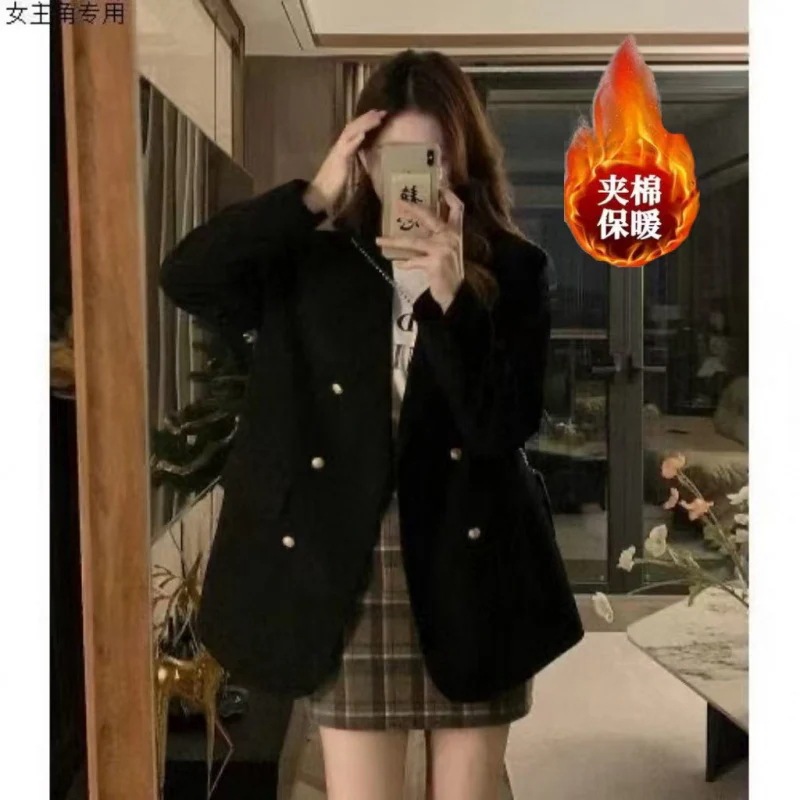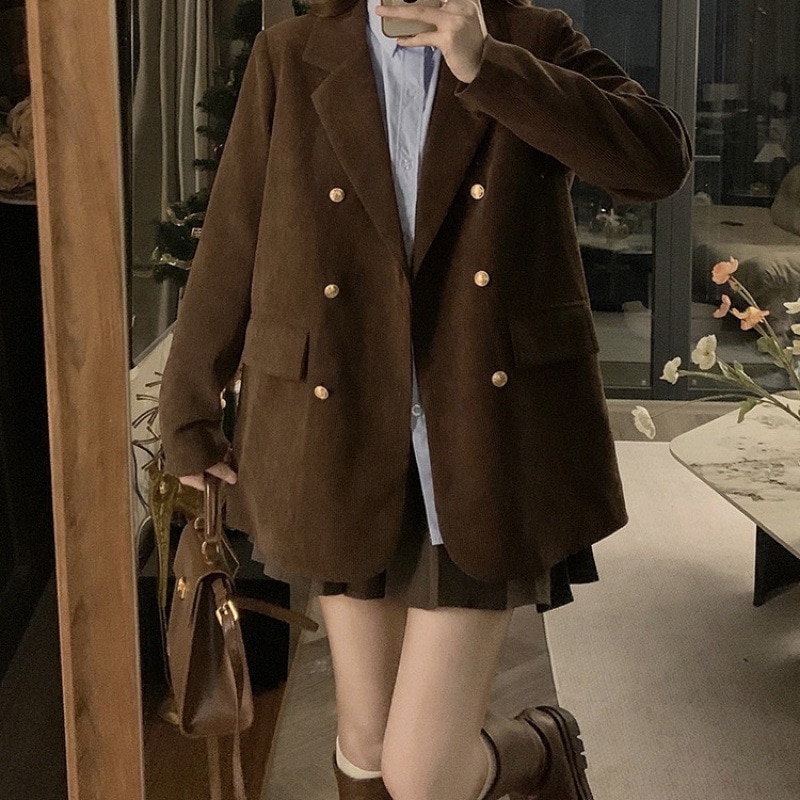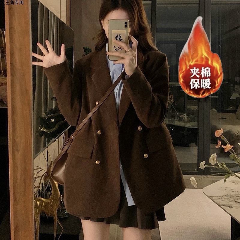 人気アウター レトロ美ラード気品スーツコーデュロイコート女秋冬厚手プラス綿ゆったり高級スーツ