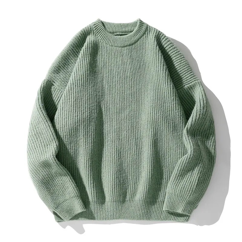 無地 ゆったりスタイル 粗編み厚手 丸首セーター男性用 秋冬モデル レトロニット ゆったりカジュアルアウター
