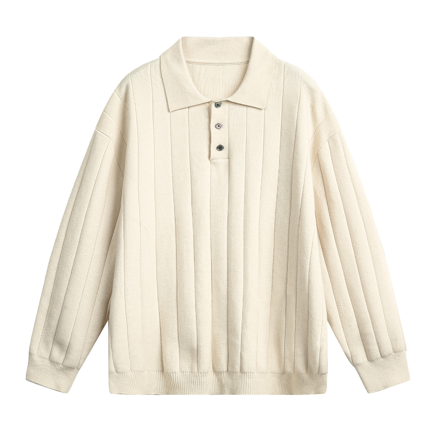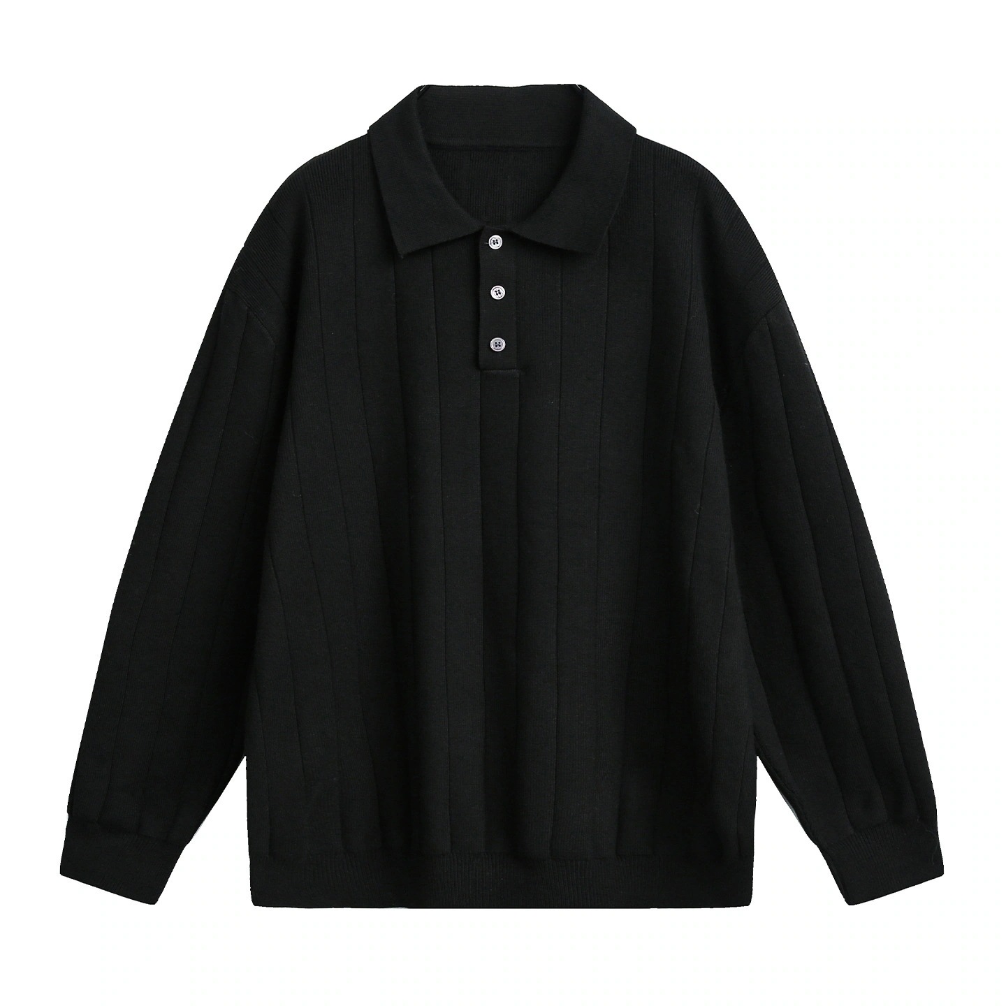 軽熟風リブ編みテクスチャーカラーカーディガンメンズ秋冬用無地ポロニットレトロ風厚手長袖Tシャツ