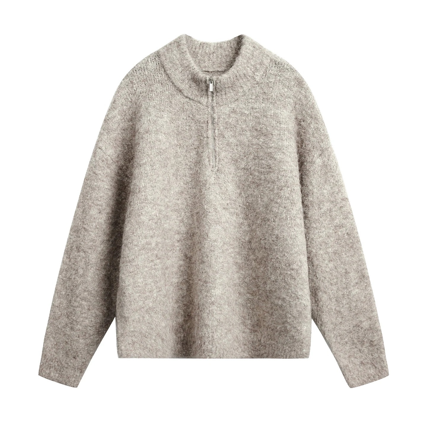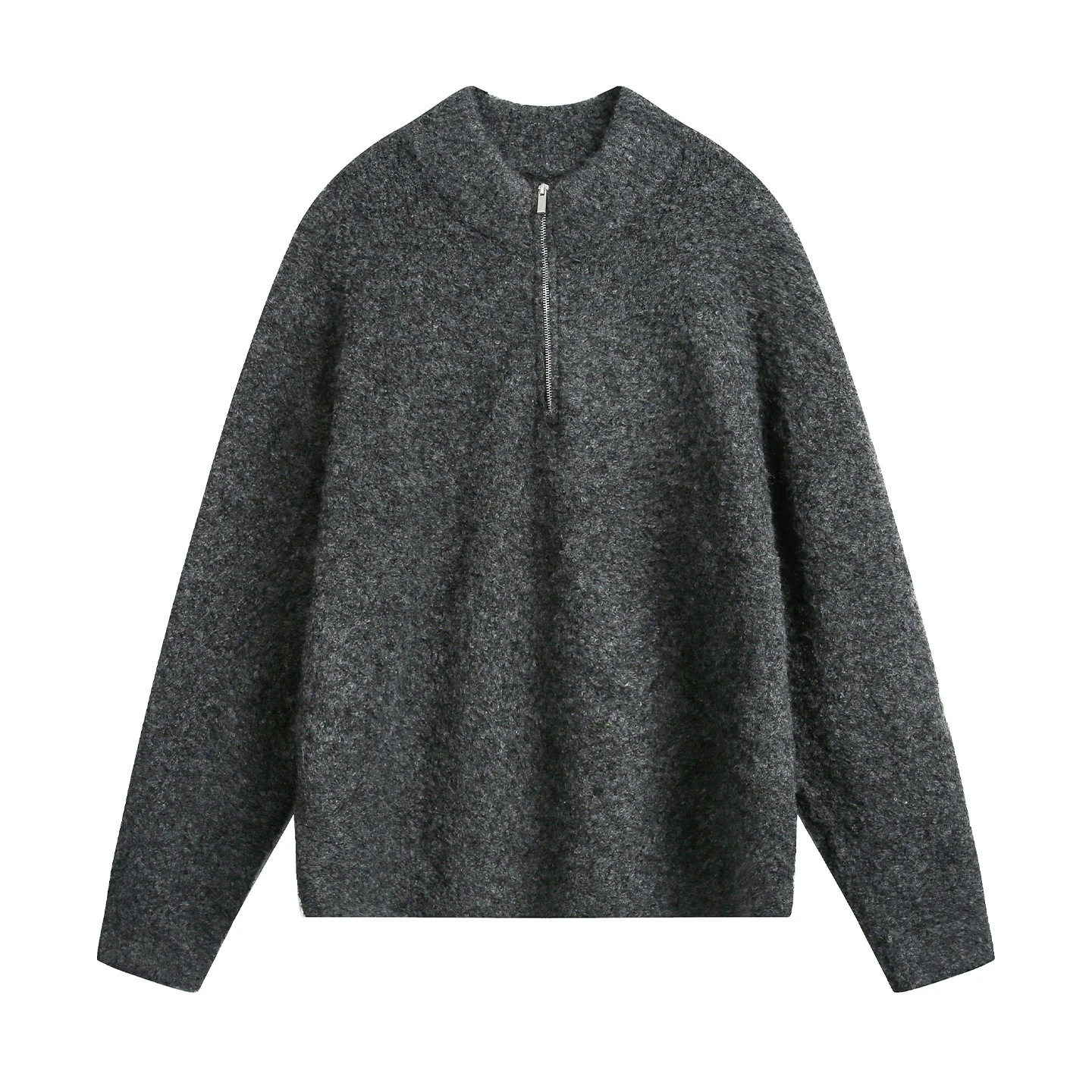 日系レトロハーフジップスタンドカラーセーターメンズ秋冬厚手保温ルーズフィットプルオーバーニットトップスアウター