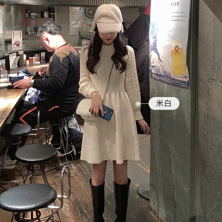 アラン 編み 拼接 ワンピース レディース ハイウエスト 着痩せ ニット スカート 服 新作 レディース