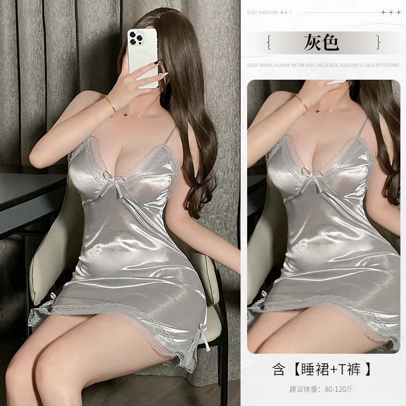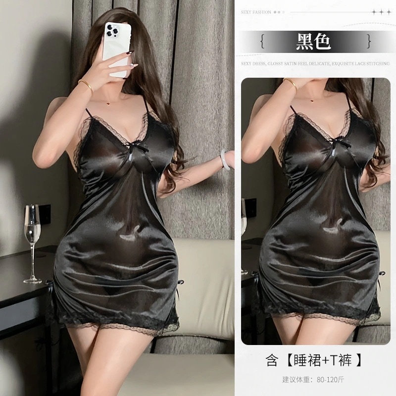 3日以内出荷セクシー ランジェリー 風 ストラップ ネグリジェ 薄手 レース 工夫 スリット パジャマ 脱ぎ着不要 セット