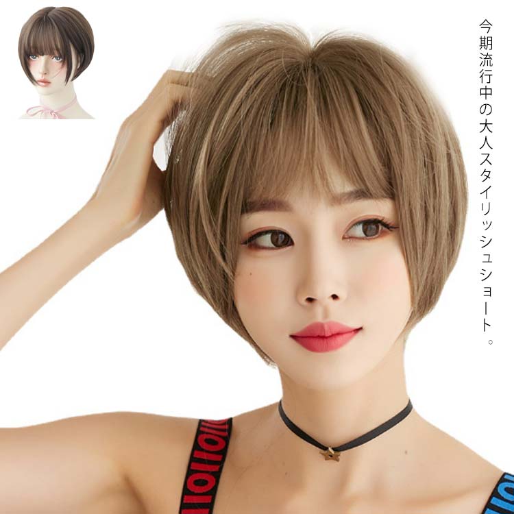 先取りかわいい ショートウイッグ 耐熱 前髪 グラデーション フルウィッグ ボリューム カール ストレート 自然 ボリューム 抜け感新作 大人スタイリッシュショート ふかし ふかし