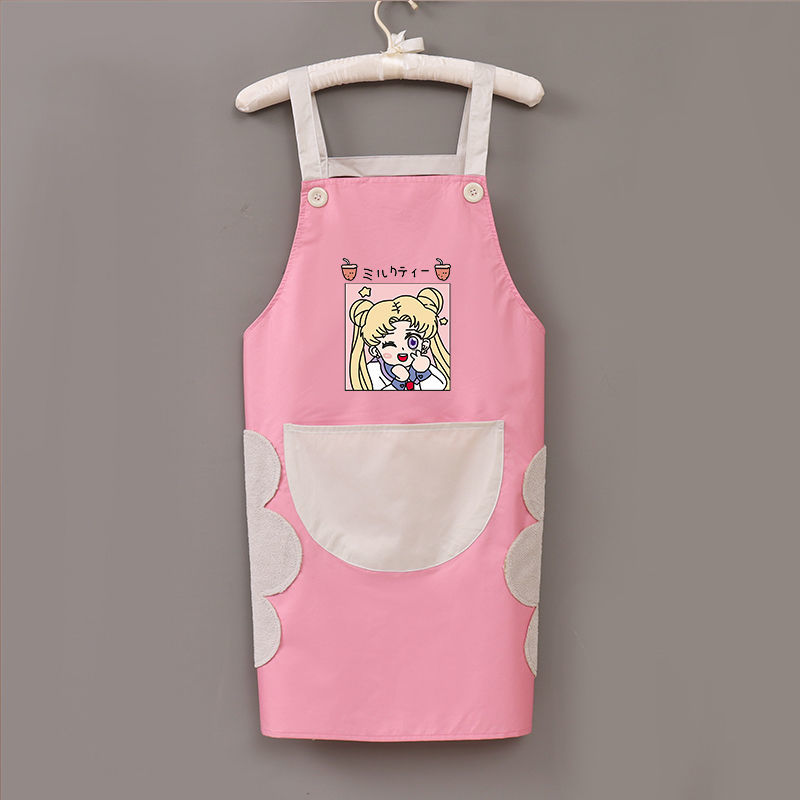 【3日出荷】大人の日系かわいいキッチンエプロン女性家庭用防水防油ウエストは手作業服を拭くことができる